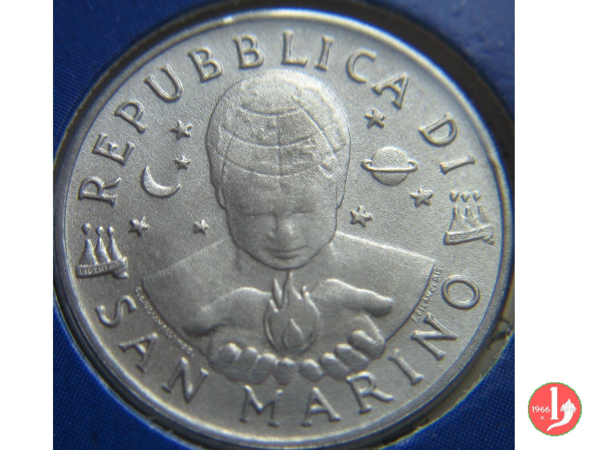 Caratteristica della monetazione in lire di San Marino dal 1972 al 2001 è stata quella di individuare per ogni anno una tematica da sviluppare e rappresentare poi sulle proprie monete. Ne consegue che anno per anno abbiamo raffigurazioni diverse sia per il dritto che per il verso anche se il nominale è sempre lo stesso.