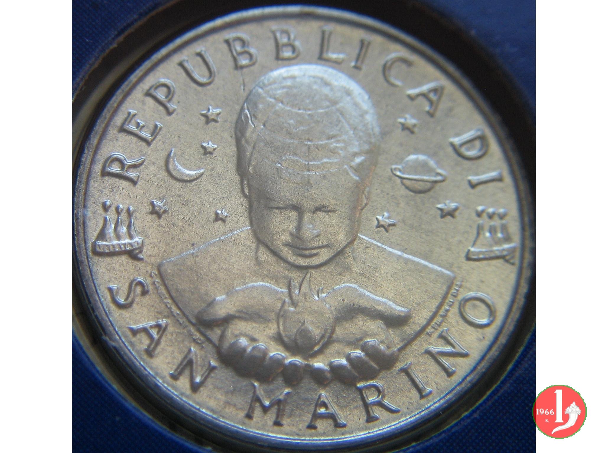 Caratteristica della monetazione in lire di San Marino dal 1972 al 2001 è stata quella di individuare per ogni anno una tematica da sviluppare e rappresentare poi sulle proprie monete. Ne consegue che anno per anno abbiamo raffigurazioni diverse sia per il dritto che per il verso anche se il nominale è sempre lo stesso.
