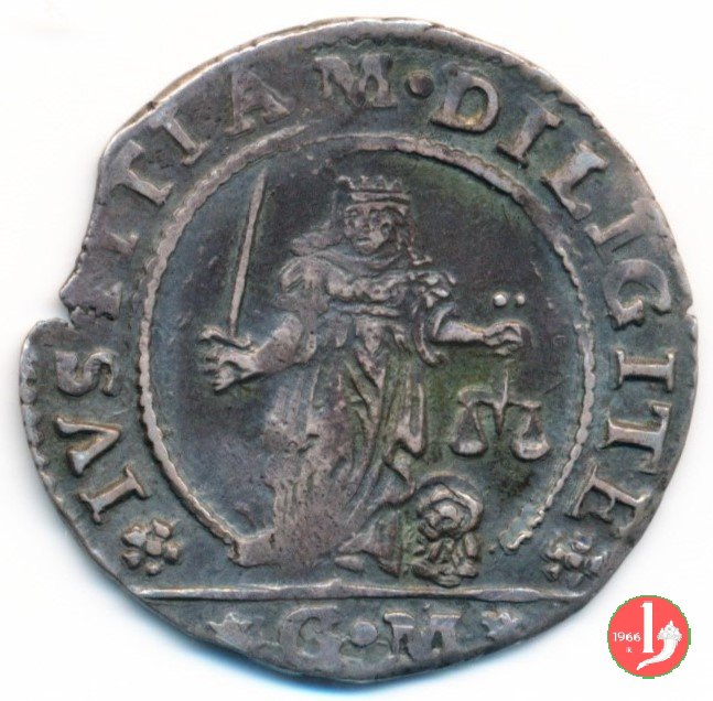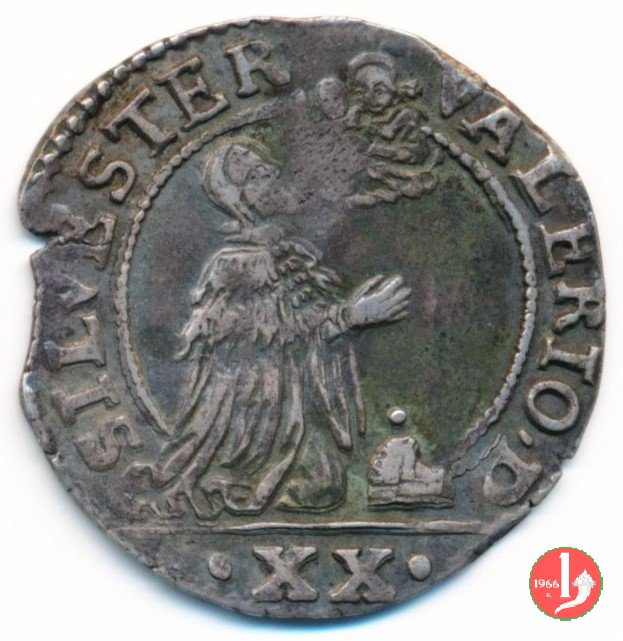 SILVESTER VALERIO • D, il doge a destra, in es. XX * IVSTITIAM • DILIGITE *, la Giustizia, in es. iniziali