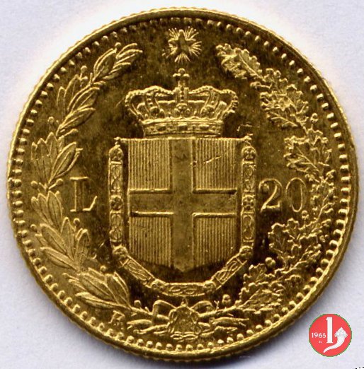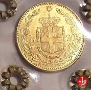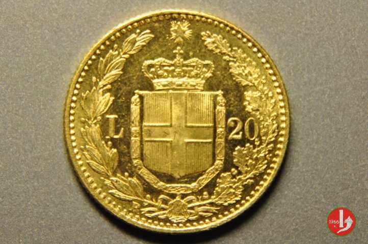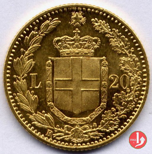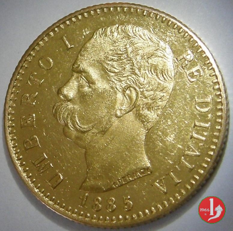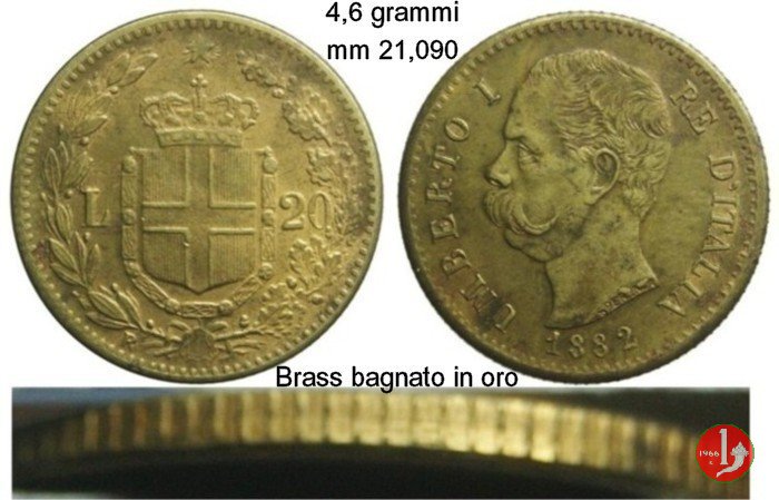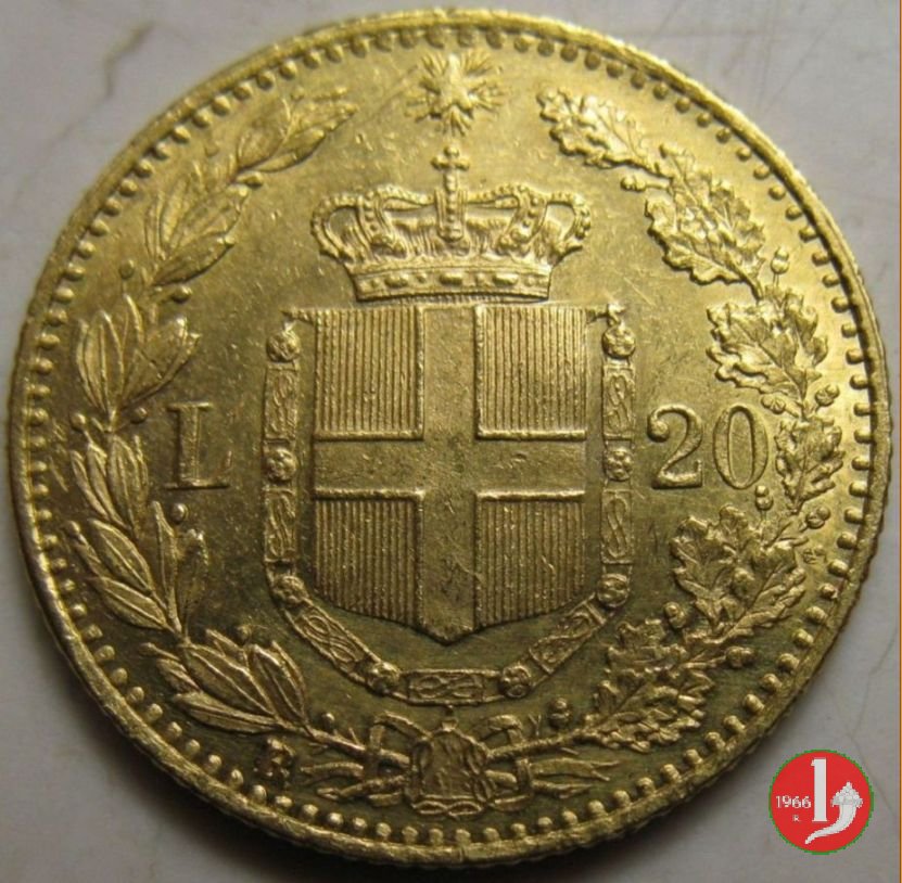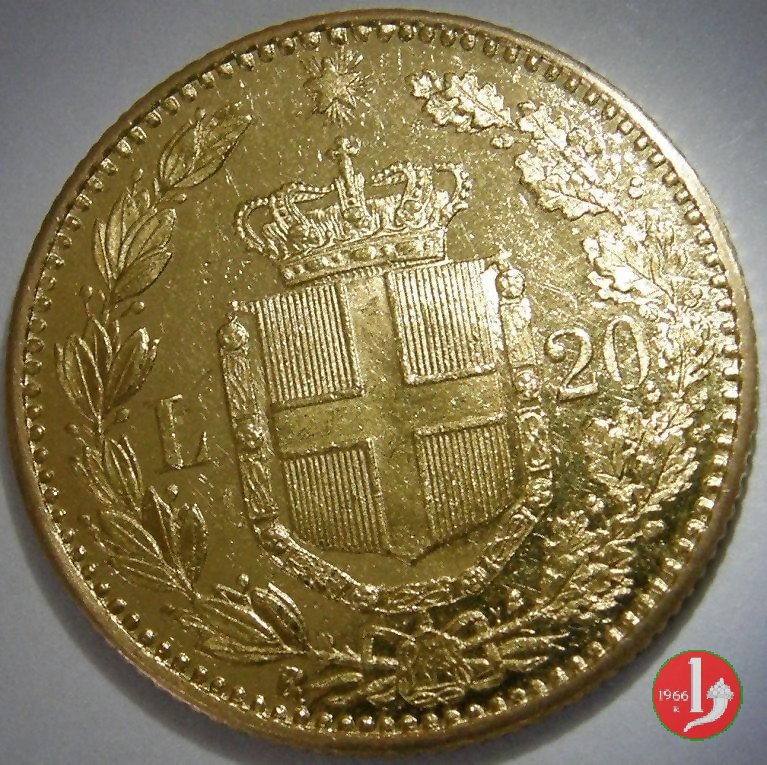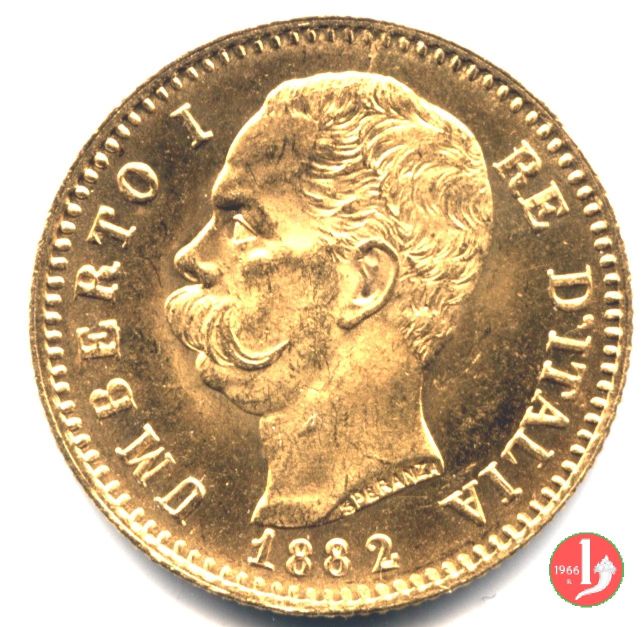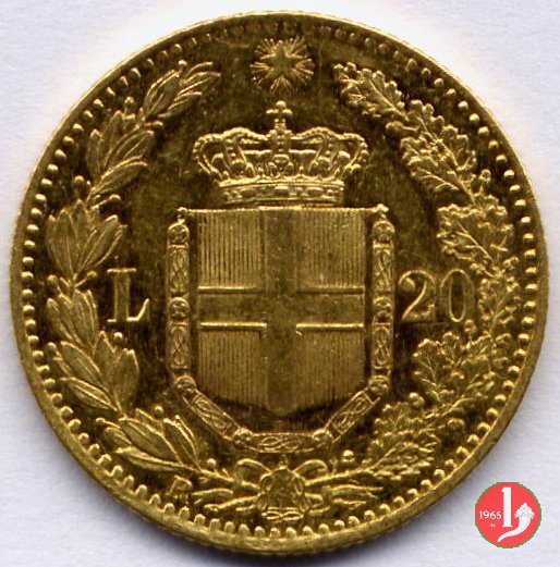 Il quantitativo di monete battuto nel 1882 è significativamente superiore a quello di tutti gli altri anni; per questo motivo altri cataloghi hanno ipotizzato, in maniera incorretta, che tali monete siano state battute anche successivamente e addirittura fino al 1915. In realta', il motivo per cui nel 1882 si batterono monete d'oro per complessive £. 139.523.000 (1.129 esemplari da 100 lire ed il resto in marenghi) è dovuto alla trasformazione di verghe d'oro e di monete auree non decimali, frutto del prestito di 644 milioni di lire richiesto ed ottenuto dal Governo Italiano all'estero, per fronteggiare la conversione in moneta metallica della carta moneta, all'indomani della Legge (7.4.1881 nr. 133) che aboliva il "corso forzoso". | |