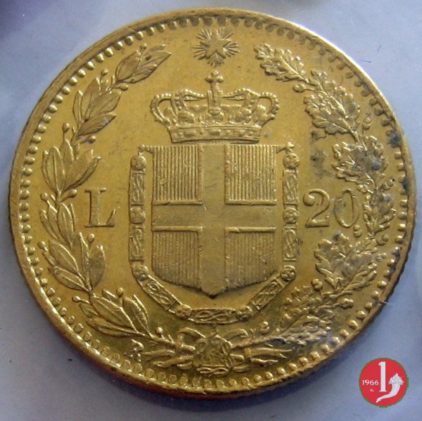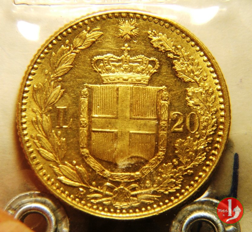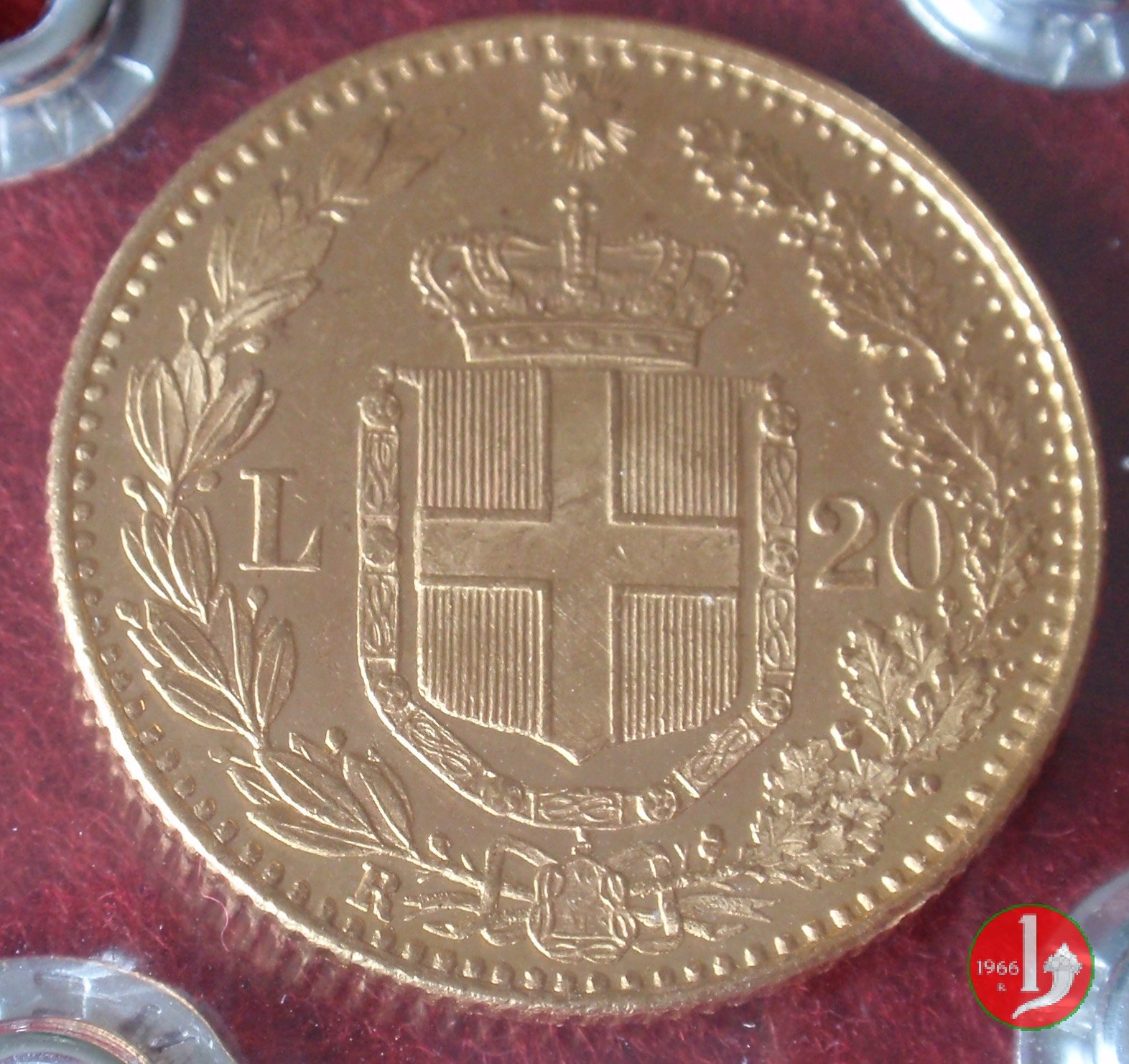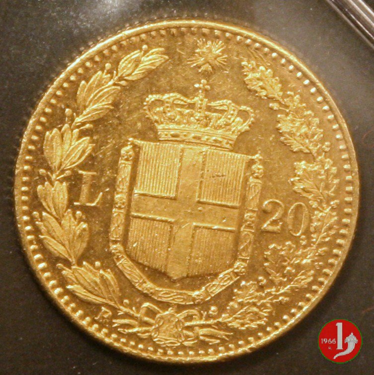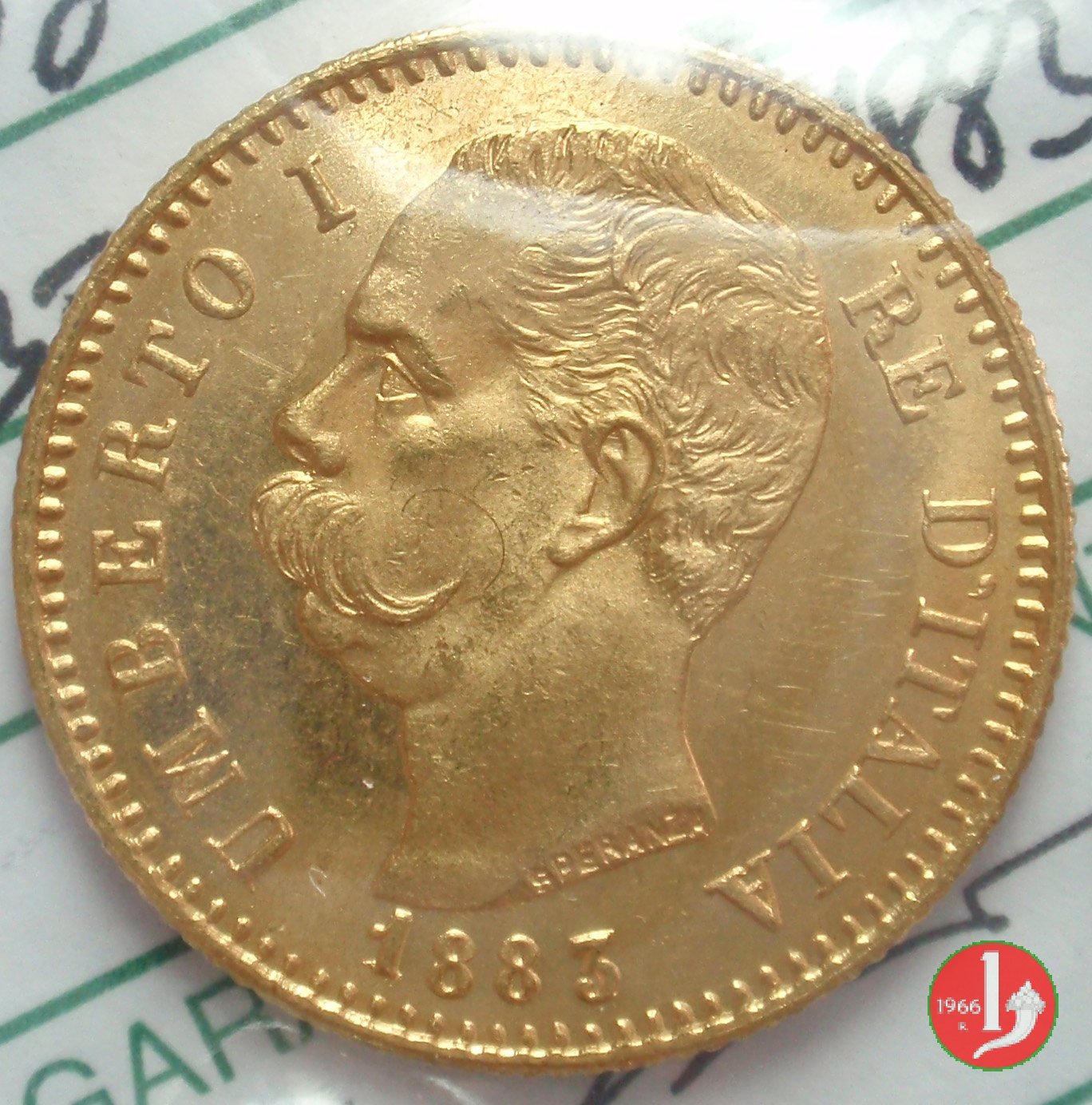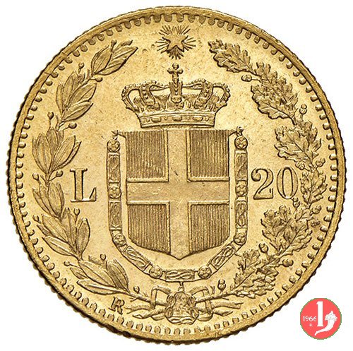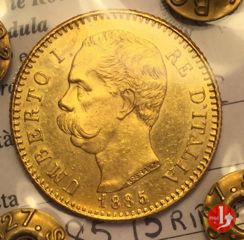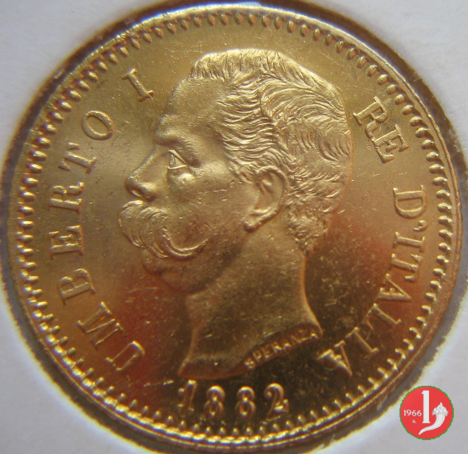 Il quantitativo di monete battuto nel 1882 è significativamente superiore a quello di tutti gli altri anni; per questo motivo altri cataloghi hanno ipotizzato, in maniera incorretta, che tali monete siano state battute anche successivamente e addirittura fino al 1915. In realta', il motivo per cui nel 1882 si batterono monete d'oro per complessive £. 139.523.000 (1.129 esemplari da 100 lire ed il resto in marenghi) è dovuto alla trasformazione di verghe d'oro e di monete auree non decimali, frutto del prestito di 644 milioni di lire richiesto ed ottenuto dal Governo Italiano all'estero, per fronteggiare la conversione in moneta metallica della carta moneta, all'indomani della Legge (7.4.1881 nr. 133) che aboliva il "corso forzoso". | |