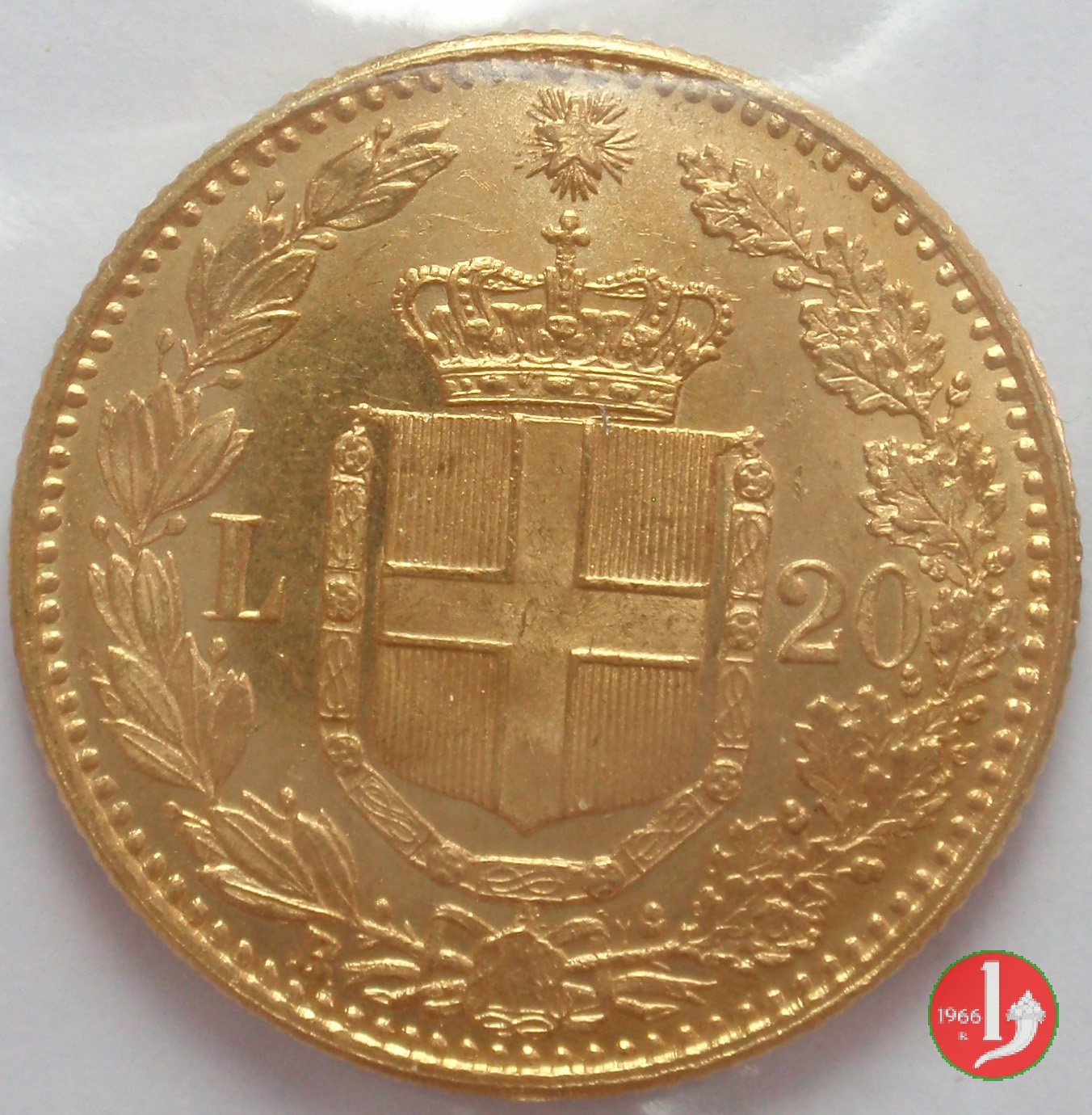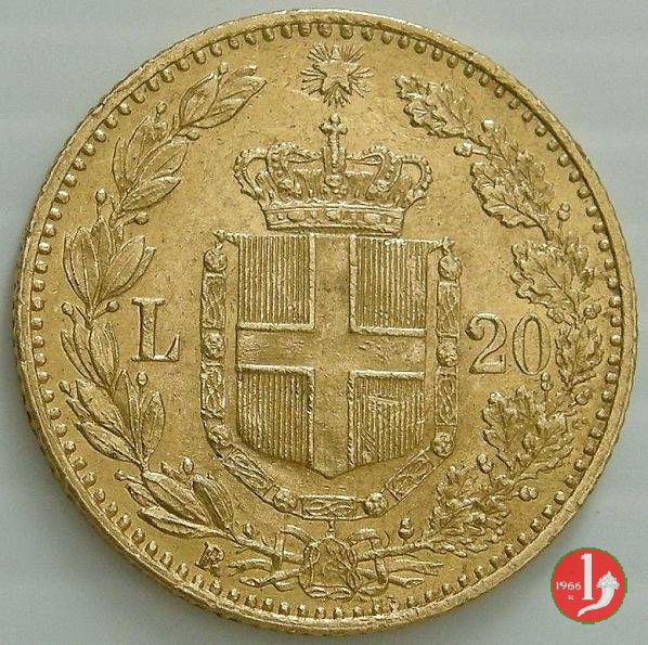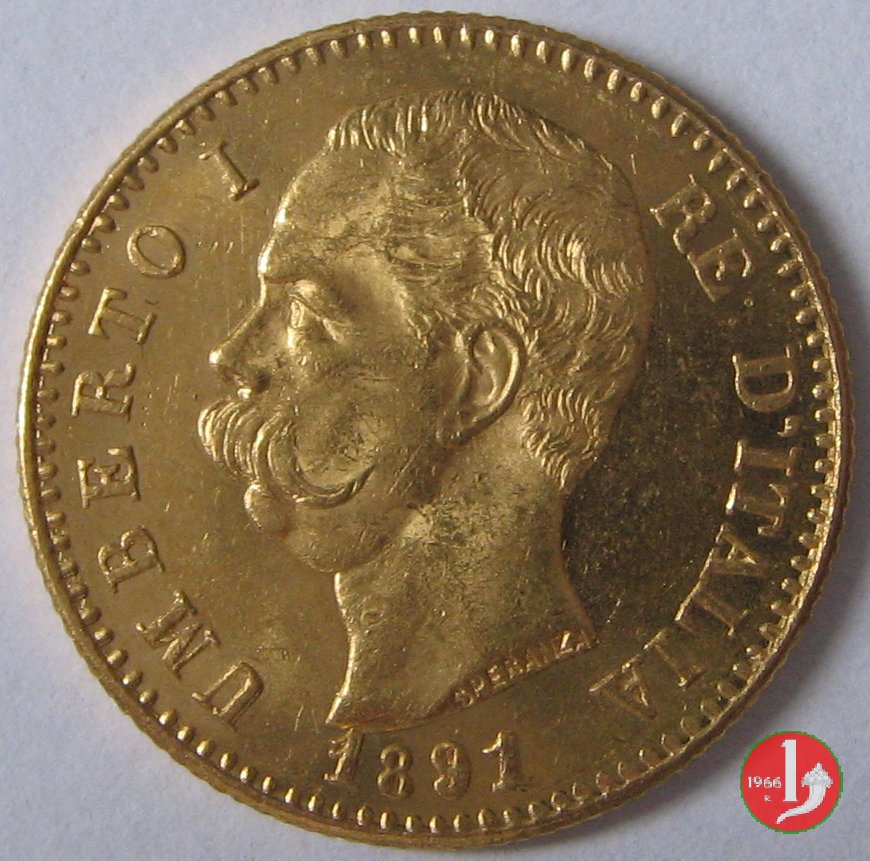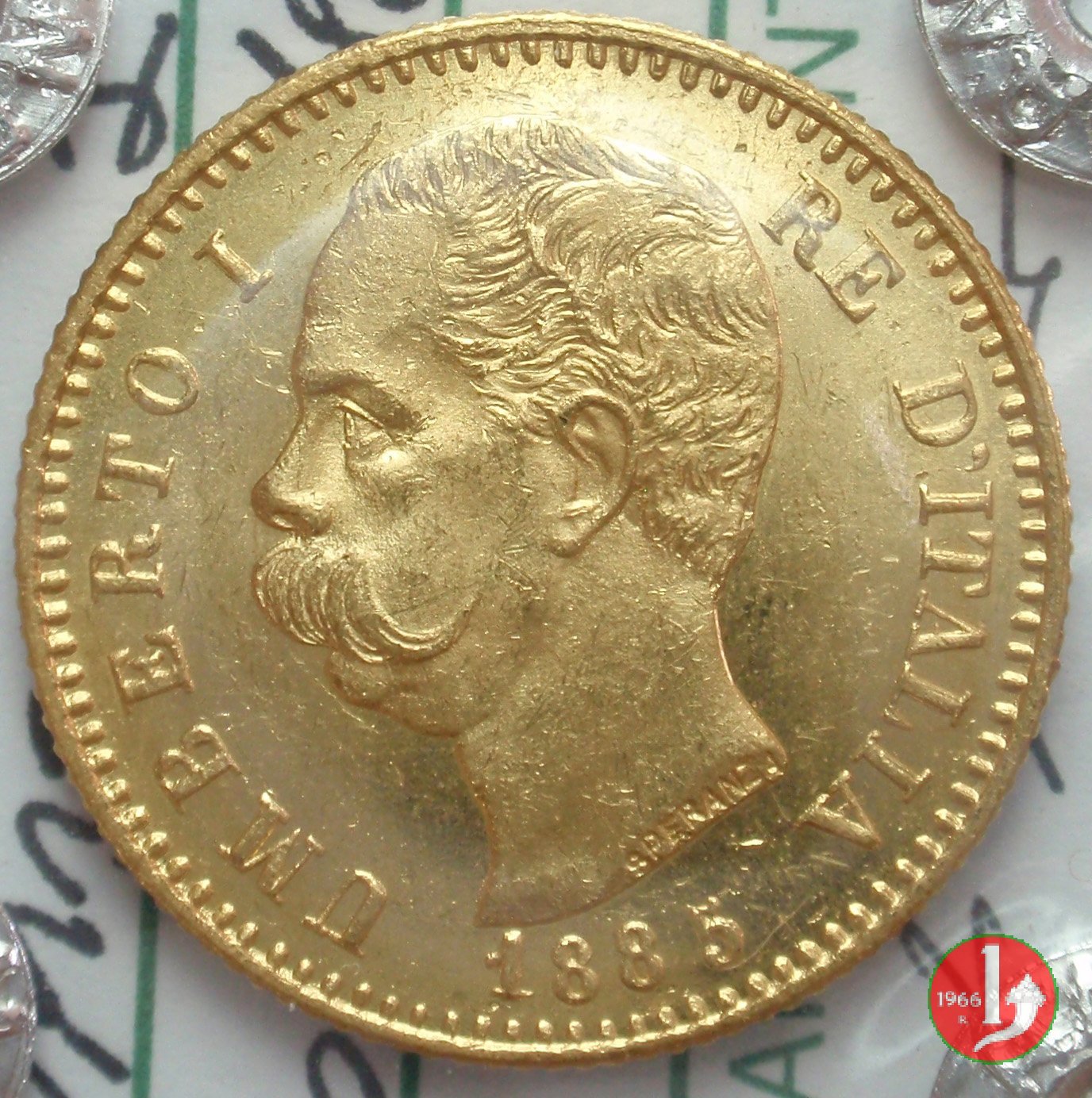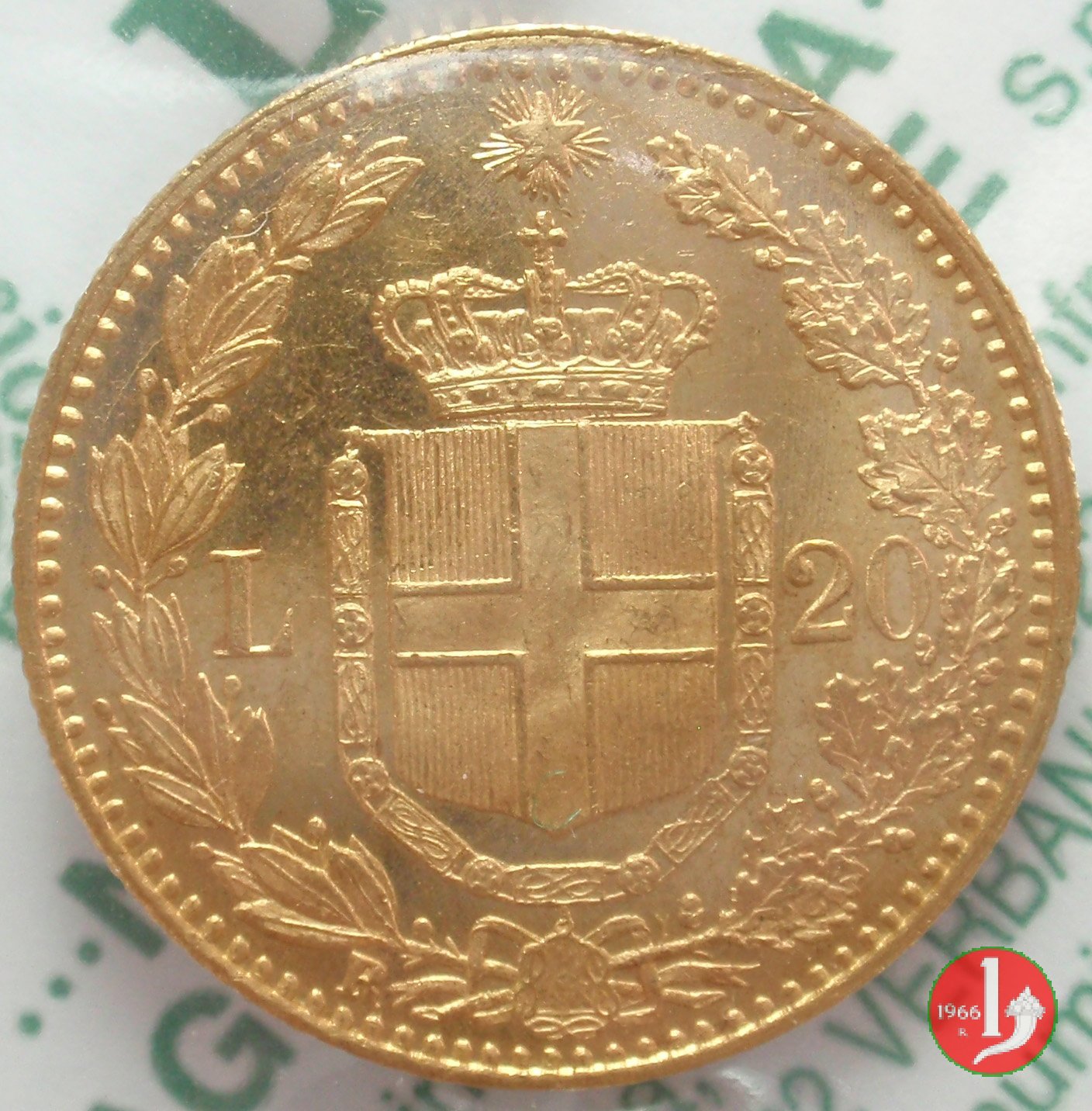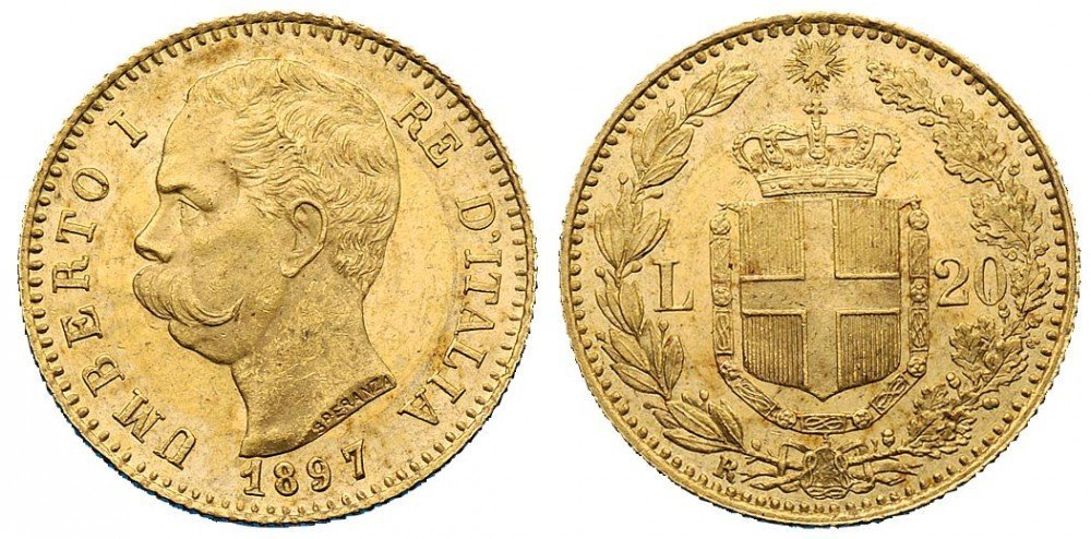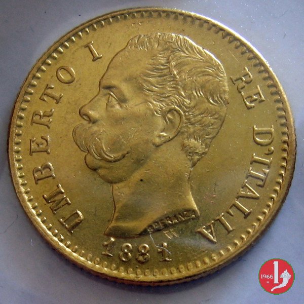 Il quantitativo di monete battuto nel 1882 è significativamente superiore a quello di tutti gli altri anni; per questo motivo altri cataloghi hanno ipotizzato, in maniera incorretta, che tali monete siano state battute anche successivamente e addirittura fino al 1915. In realta', il motivo per cui nel 1882 si batterono monete d'oro per complessive £. 139.523.000 (1.129 esemplari da 100 lire ed il resto in marenghi) è dovuto alla trasformazione di verghe d'oro e di monete auree non decimali, frutto del prestito di 644 milioni di lire richiesto ed ottenuto dal Governo Italiano all'estero, per fronteggiare la conversione in moneta metallica della carta moneta, all'indomani della Legge (7.4.1881 nr. 133) che aboliva il "corso forzoso". | |
