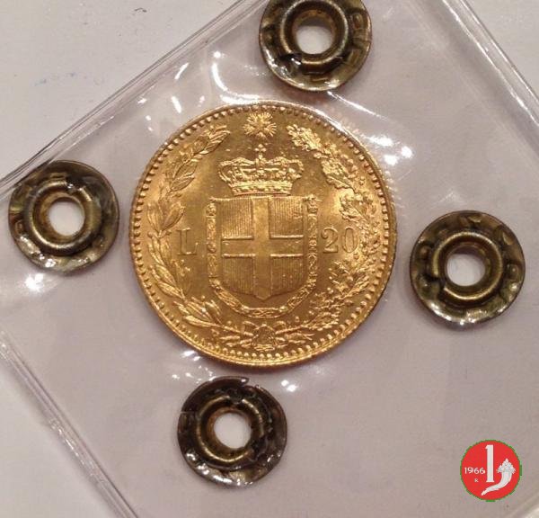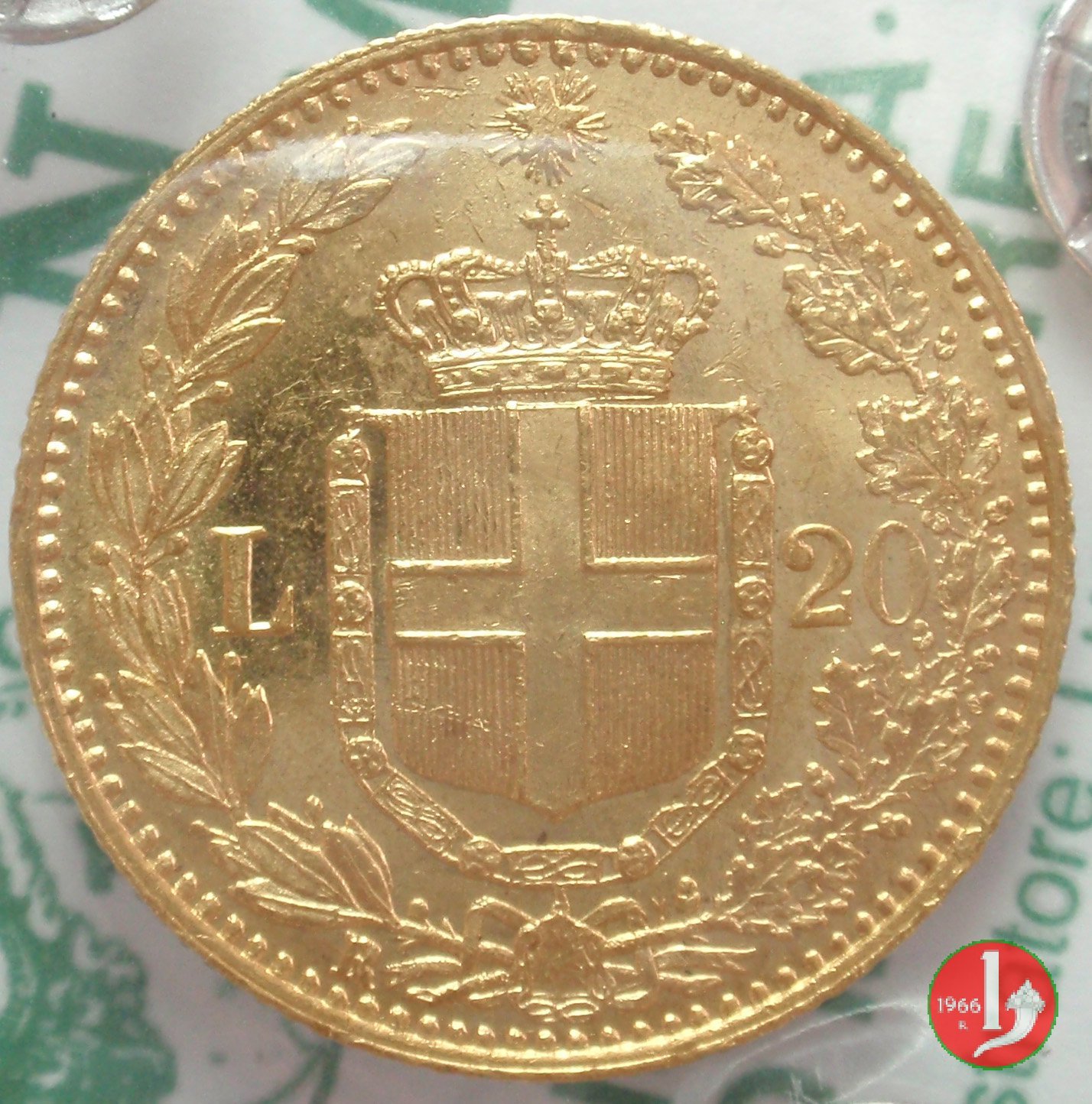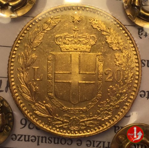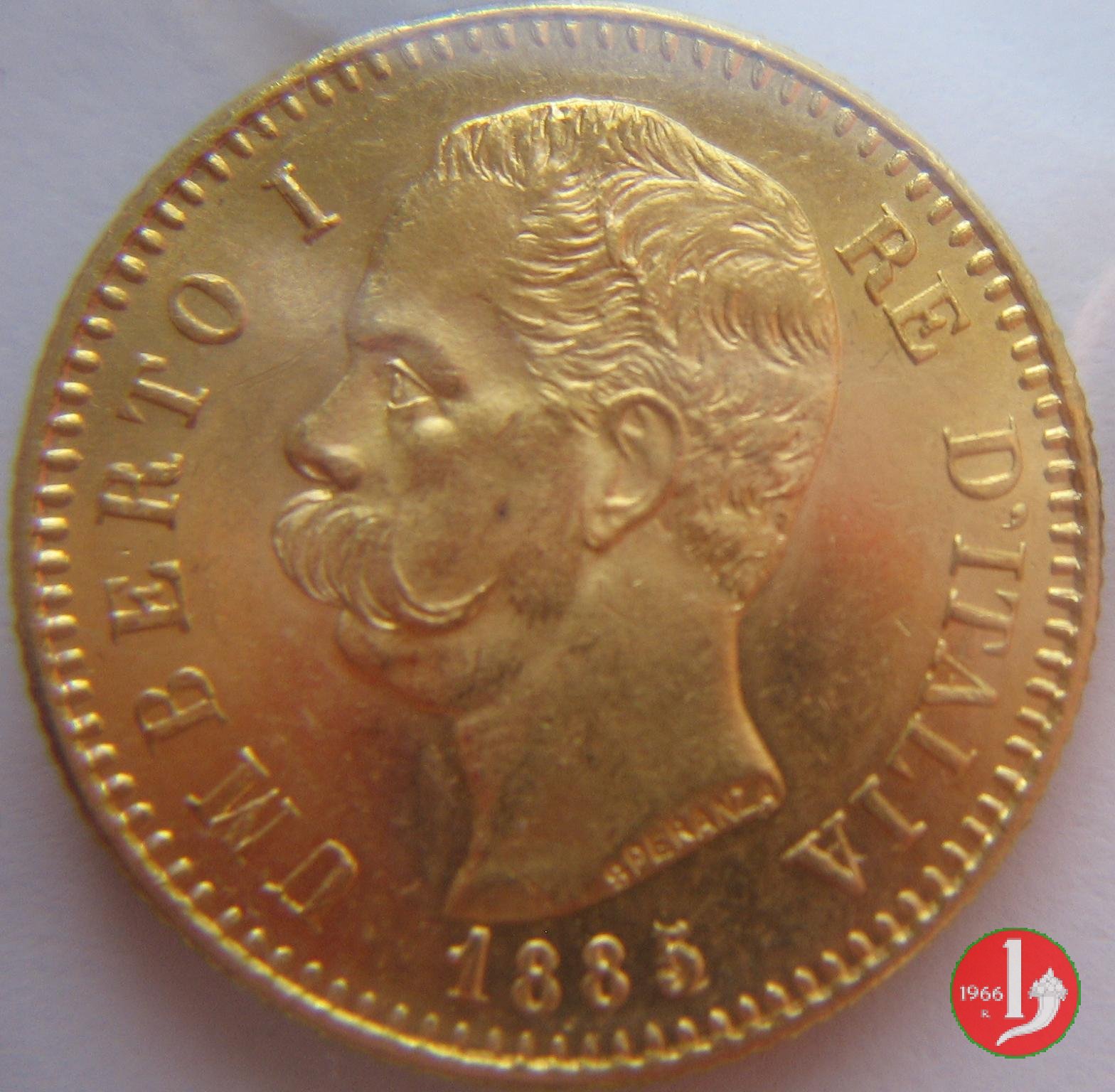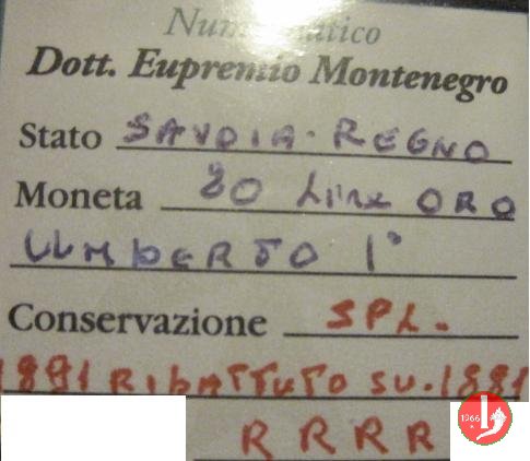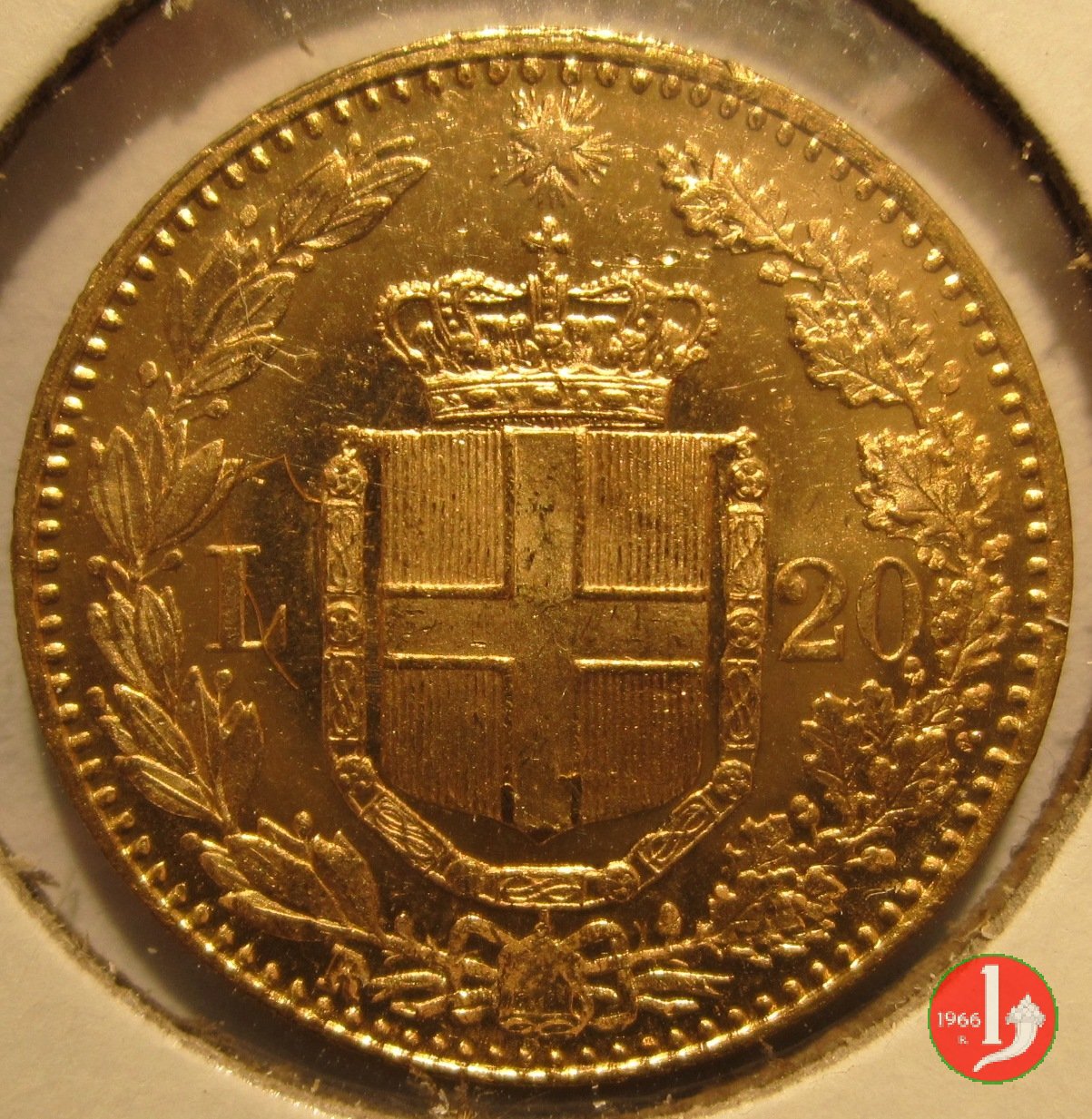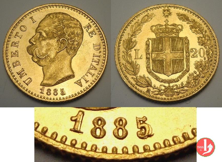 Il quantitativo di monete battuto nel 1882 è significativamente superiore a quello di tutti gli altri anni; per questo motivo altri cataloghi hanno ipotizzato, in maniera incorretta, che tali monete siano state battute anche successivamente e addirittura fino al 1915. In realta', il motivo per cui nel 1882 si batterono monete d'oro per complessive £. 139.523.000 (1.129 esemplari da 100 lire ed il resto in marenghi) è dovuto alla trasformazione di verghe d'oro e di monete auree non decimali, frutto del prestito di 644 milioni di lire richiesto ed ottenuto dal Governo Italiano all'estero, per fronteggiare la conversione in moneta metallica della carta moneta, all'indomani della Legge (7.4.1881 nr. 133) che aboliva il "corso forzoso". | |