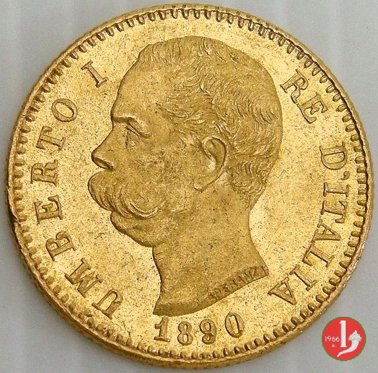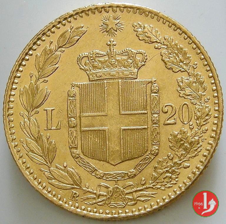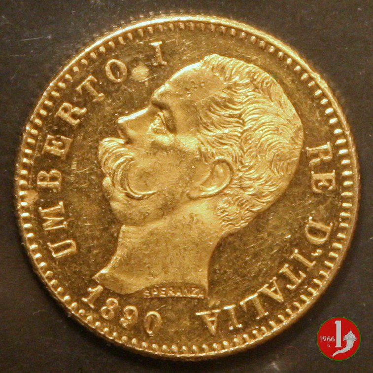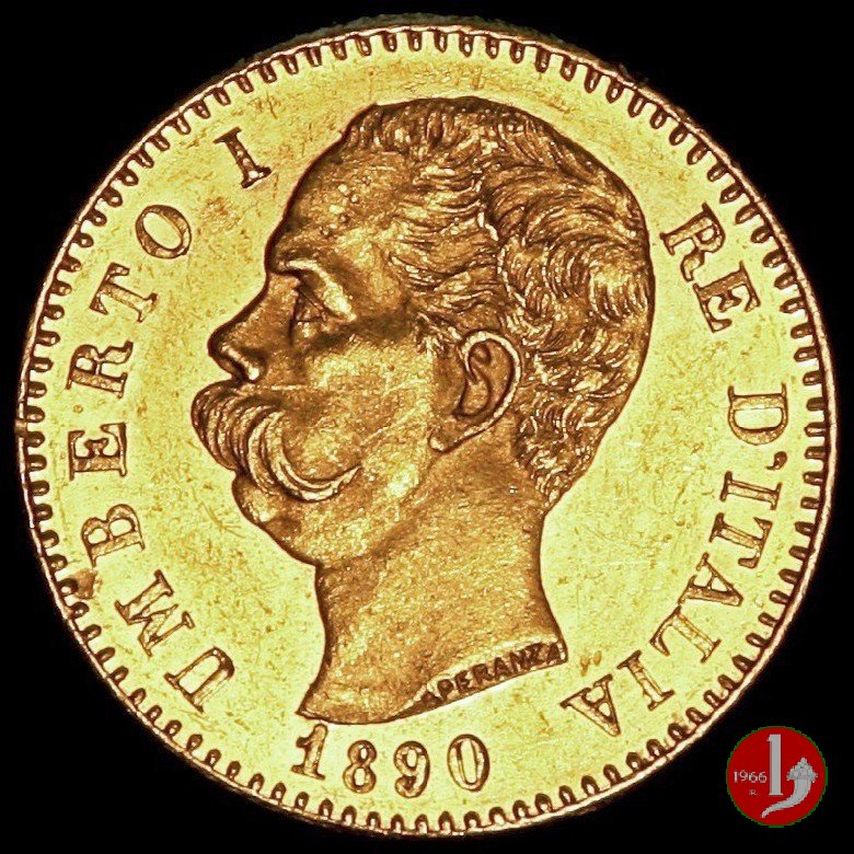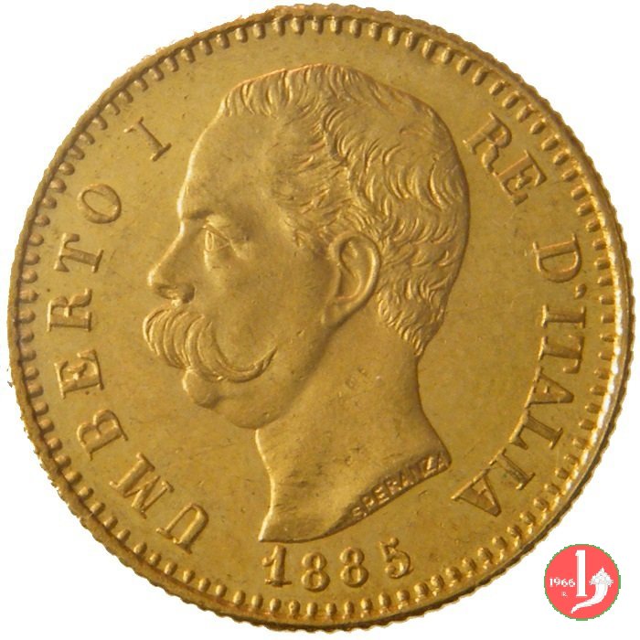 Volto del Re a sinistra, intorno UMBERTO I RE D'ITALIA. In basso il millesimo. Alla base del