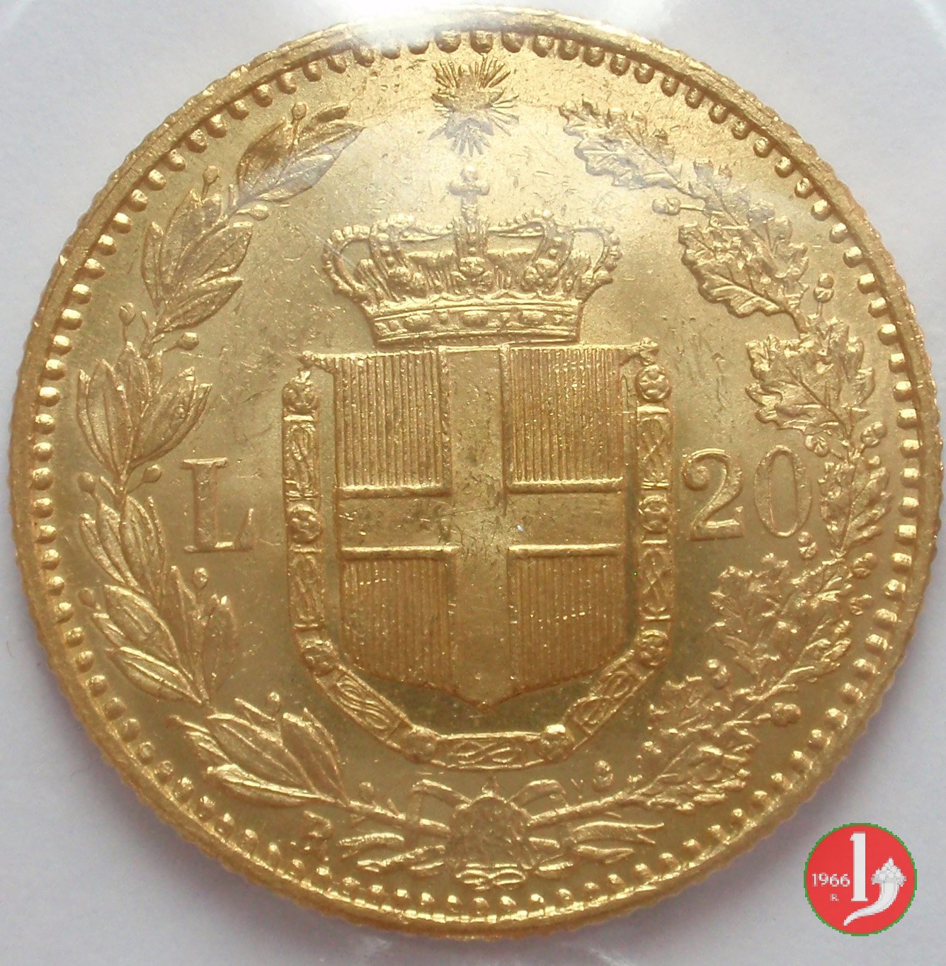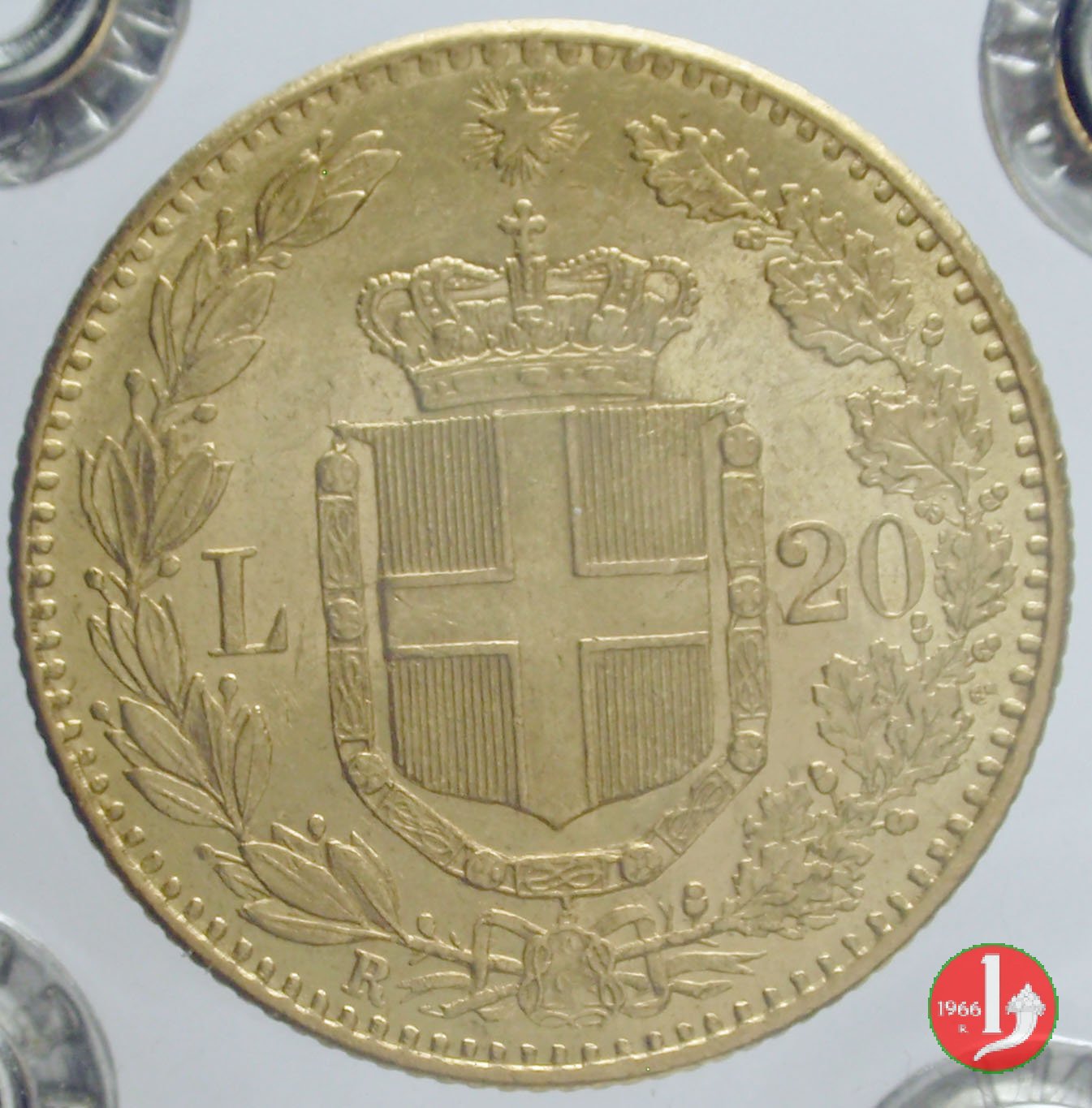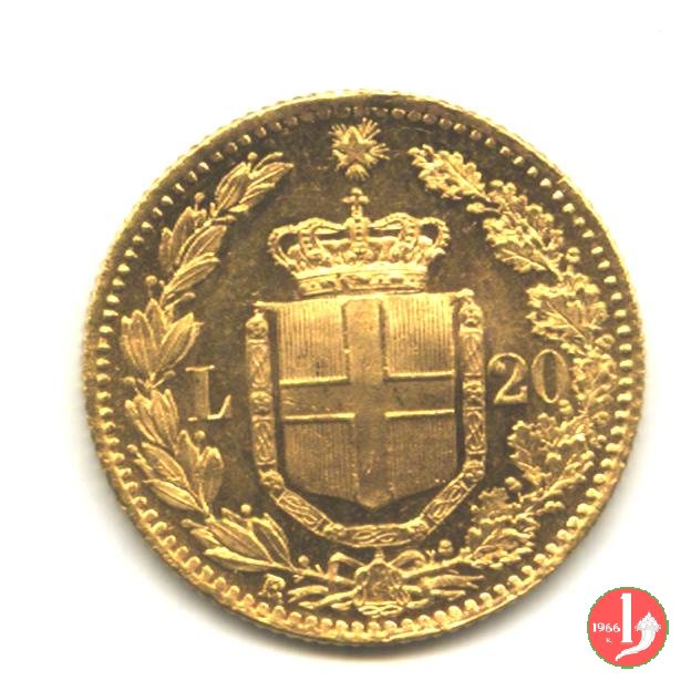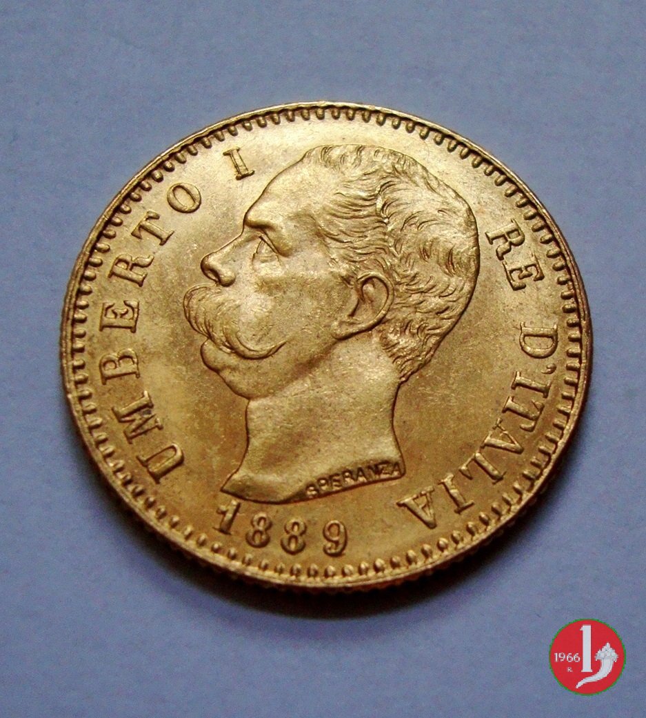 Volto del Re a sinistra, intorno UMBERTO I RE D'ITALIA. In basso il millesimo. Alla base del