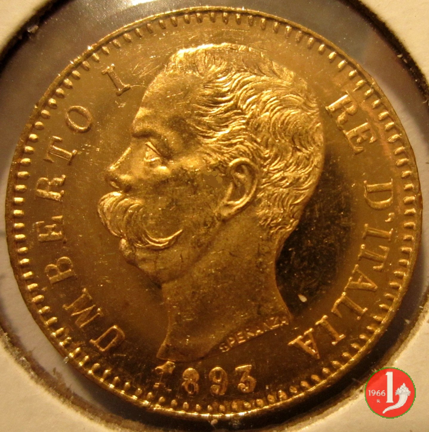 Da un intervento di Dimitrios sul forum lamoneta.it a proposito della variante con 1 ribattuto: la moneta è sicuramente piú rara rispetto al tipo normale senza l’uno ribattuto, ma non cosi rara da meritare un R2. Per fare un po’ di statistica, ti dico che nel mio archivio ho segnato, per gli ultimi 5 anni, 52 passaggi in vendita per la data 1893. Di questi 52 pezzi, 9 erano con il primo uno ribattuto.