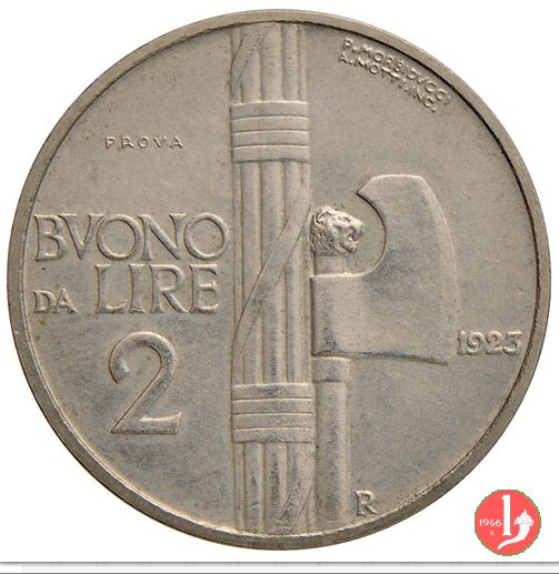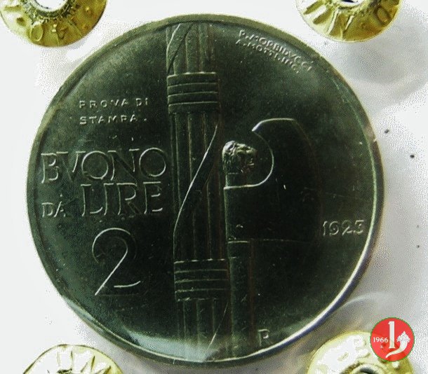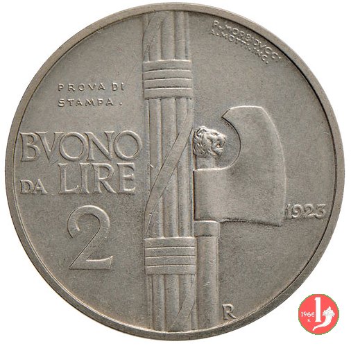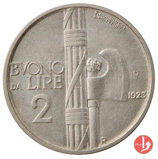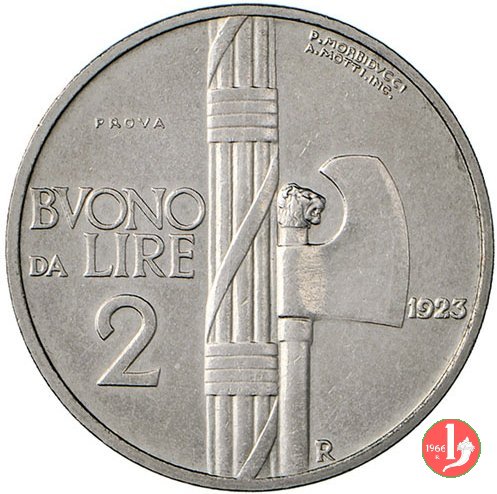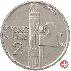 | La Commissione Tecnico-Artistica Monetaria approvò il D/ il 7/01/1923 ma non il R/, giudicando il fascio piú somigliante al quello della Repubblica Francese che non a quello romano. Pertanto lautore modificò il dritto, seguendo le indicazioni del ministro De Stefani. | ||||||