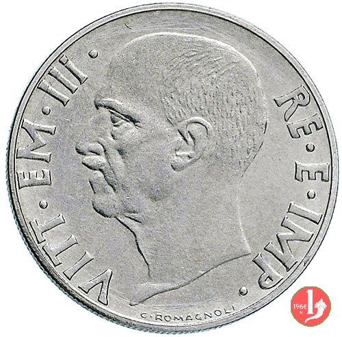 | 1938 XVII | W-V3PR/70-2 ![]() | Roma | Prova in acmonital. Al R/, in basso, orizzontalmente, a sinistra, l' indicazione PROVA. | Pagani Prove 314 Simonetti 203/1 | R5 | |