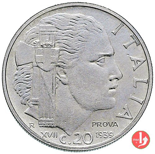 | 1939 XVII | W-V3PR/70-3 ![]() | Roma | Prova in acmonital. Diametro 21,7 mm. Al R/, in basso, orizzontalmente, a destra, l' indicazione PROVA. | Pagani Prove 315