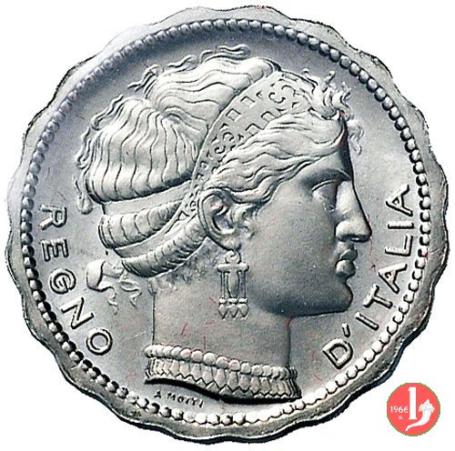 5 Esperimento. Diametro 18,6 mm; peso 3,10 g. I tondelli utilizzati per questa coniazione sono stati ricavati da quelli di monete del 1894 in nichelio (titolo: 250 nichelio e 750 rame)