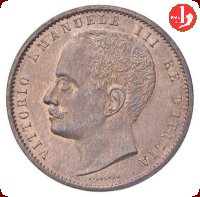 I modelli sono stati desunti da quelli della monetazione in argento del 1901, preparati da Filippo Speranza, che vennero ritoccati da Polledri. Ne furono coniati 10 esemplari (5+5) e inviati nel gennaio 1904 al Ministero del Tesoro , che avrebbe dovuto scegliere quale dei due fosse da preferirsi. Tuttavia a questi progetti non fece seguito una moneta. | ||||||