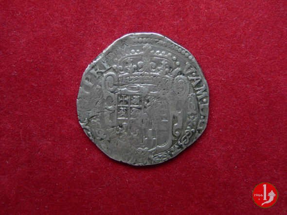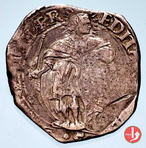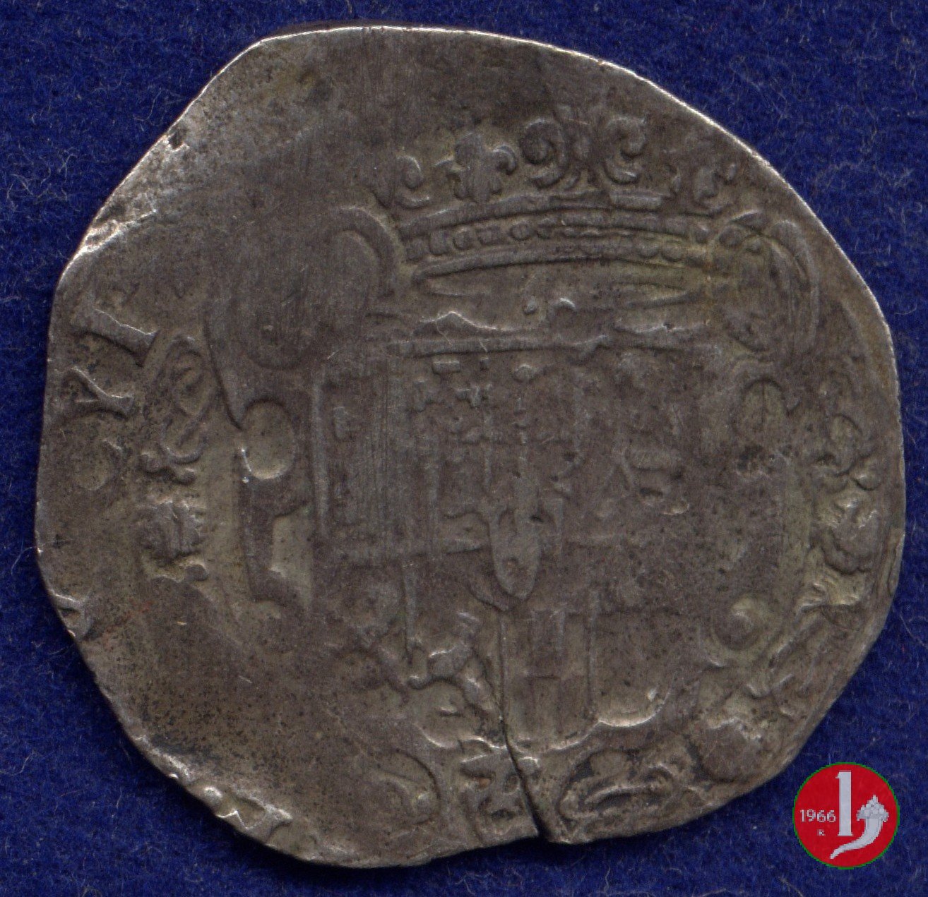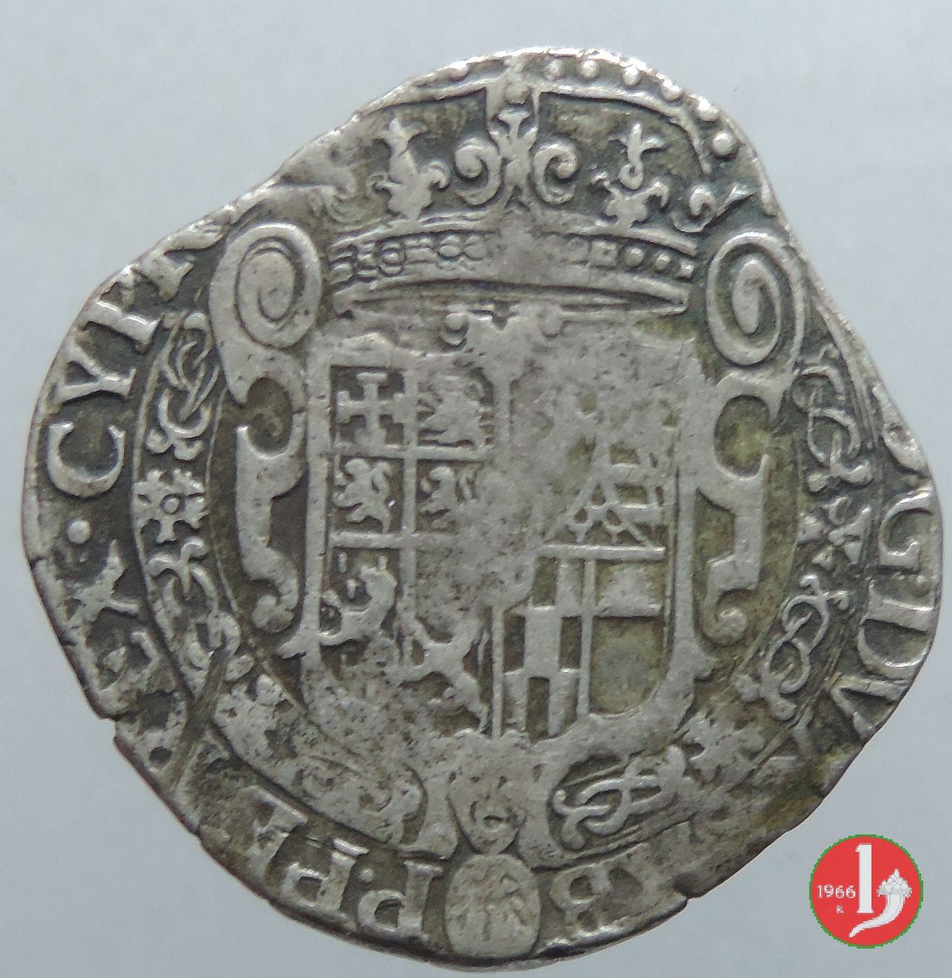 Scudo completo coronato da una corona reale (chiusa), incartocciato e circondato dal collare dell'annunziata, intorno V • AM • D : G • DUX • SAB P • PE • REX • CYPRI Il beato Amedeo in piedi, appoggiato su uno scudo su cui è scritto: • F • IUDI E • IUS D • PAU E • DO D • P, in esergo il valore • S • 5 • , intorno BENEDIC HAER EDITATI TUAE