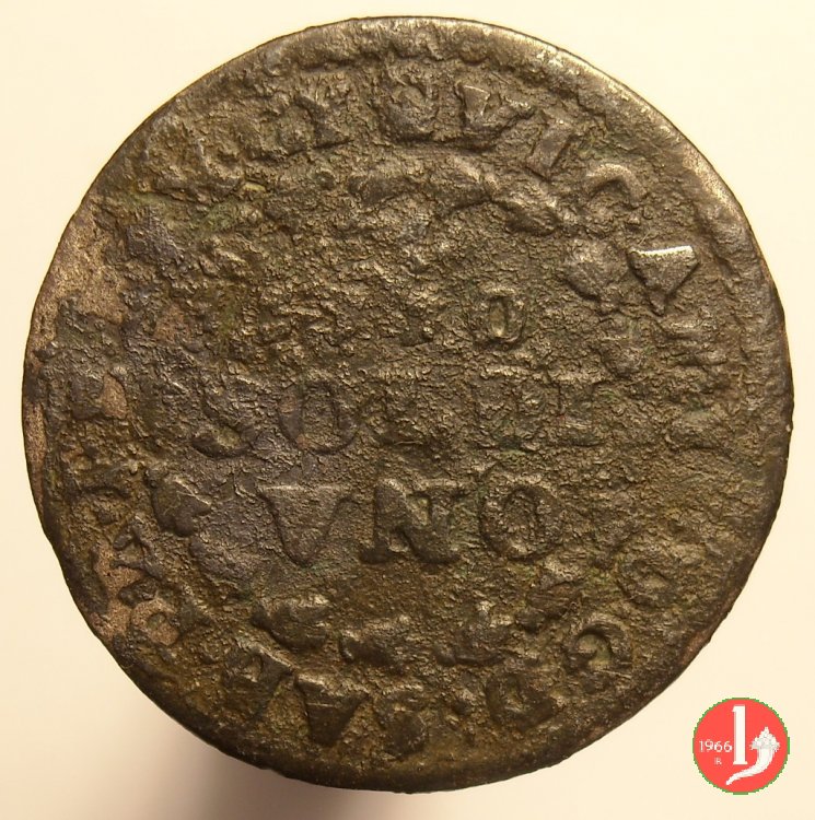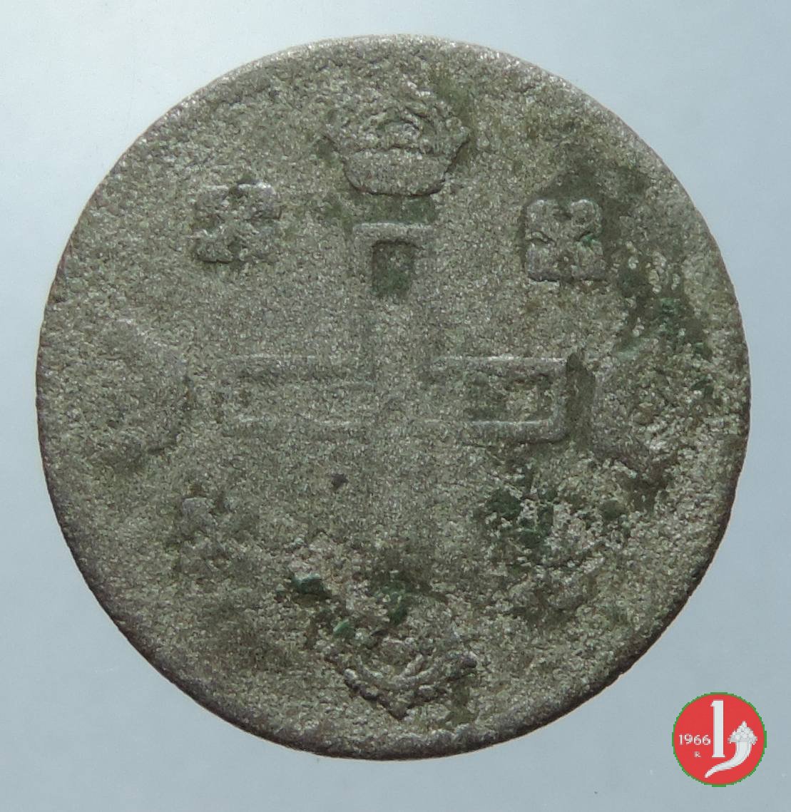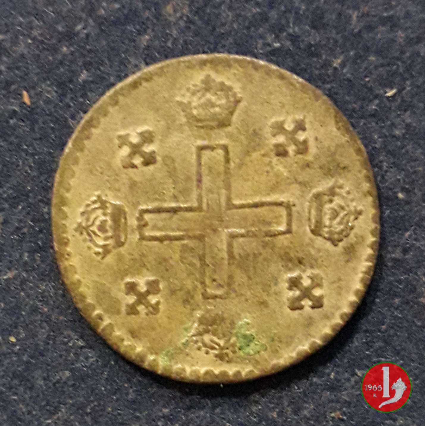 In tre righe: data - SOLDI - UNO, contornati da dei giglietti, intorno rosetta VIC • AM • II • D • G • D • SAB • PR • PE • REX • CY Croce piana con corone alle estremità e 4 crocette mauriziane