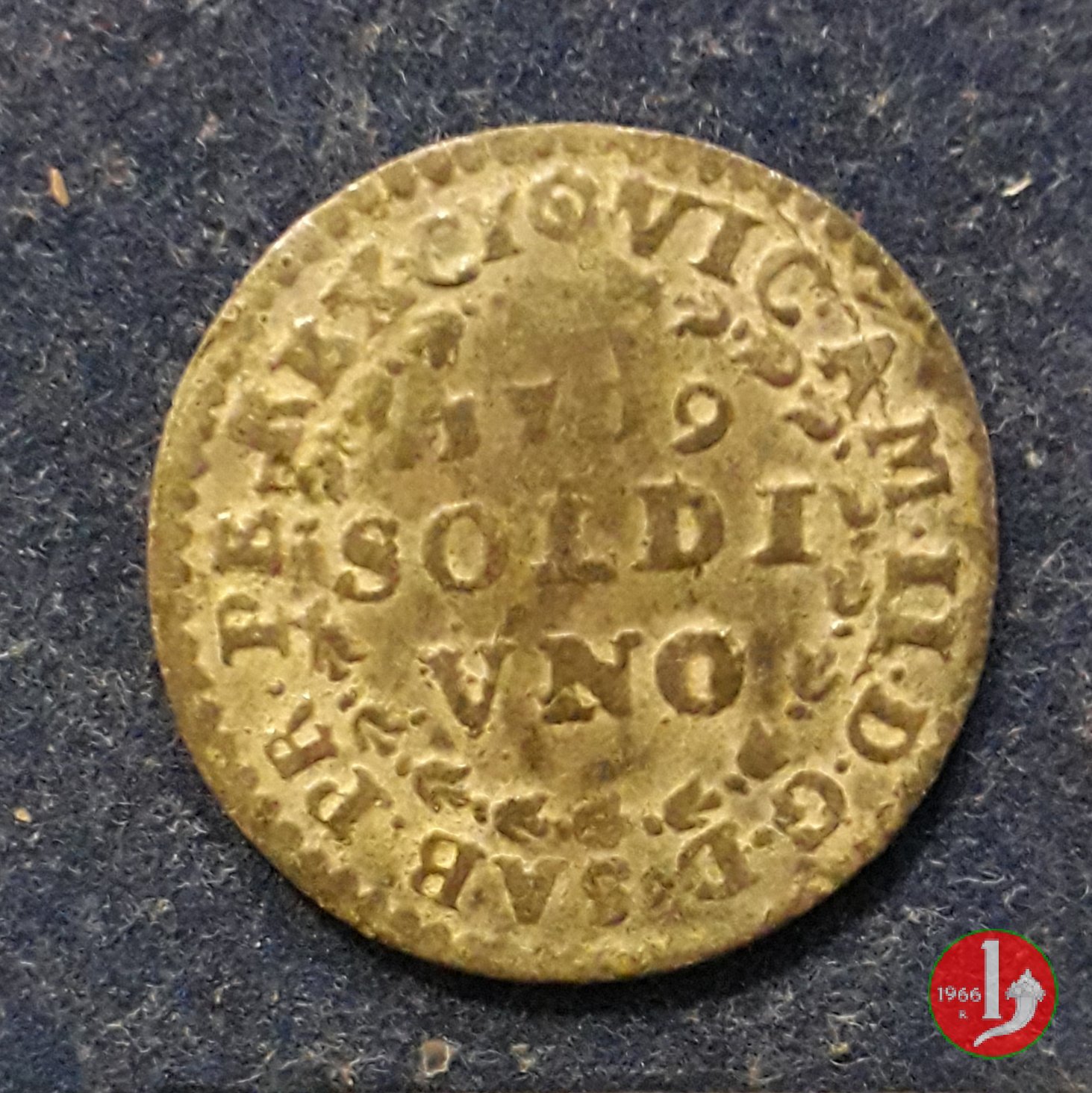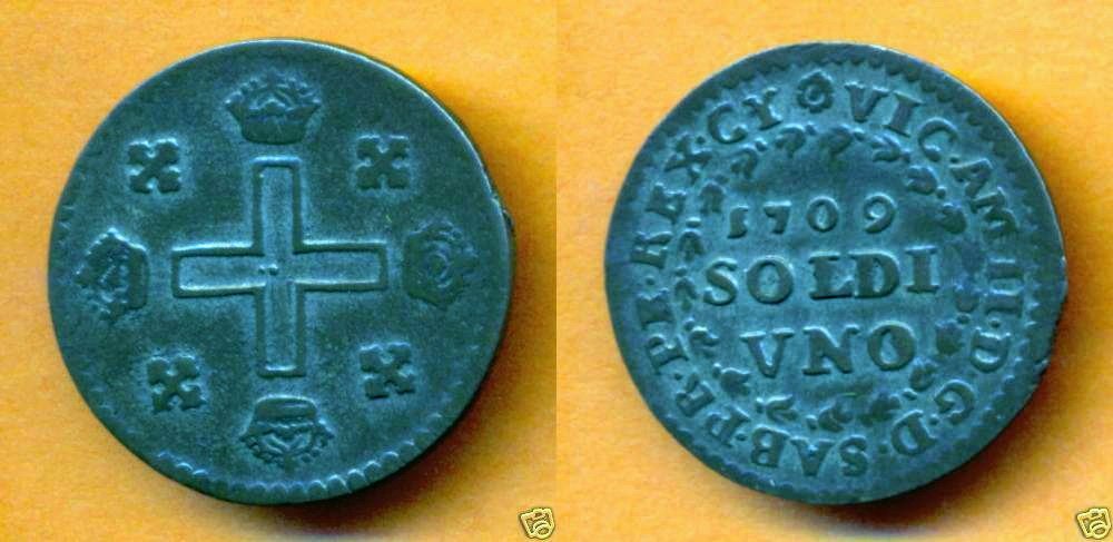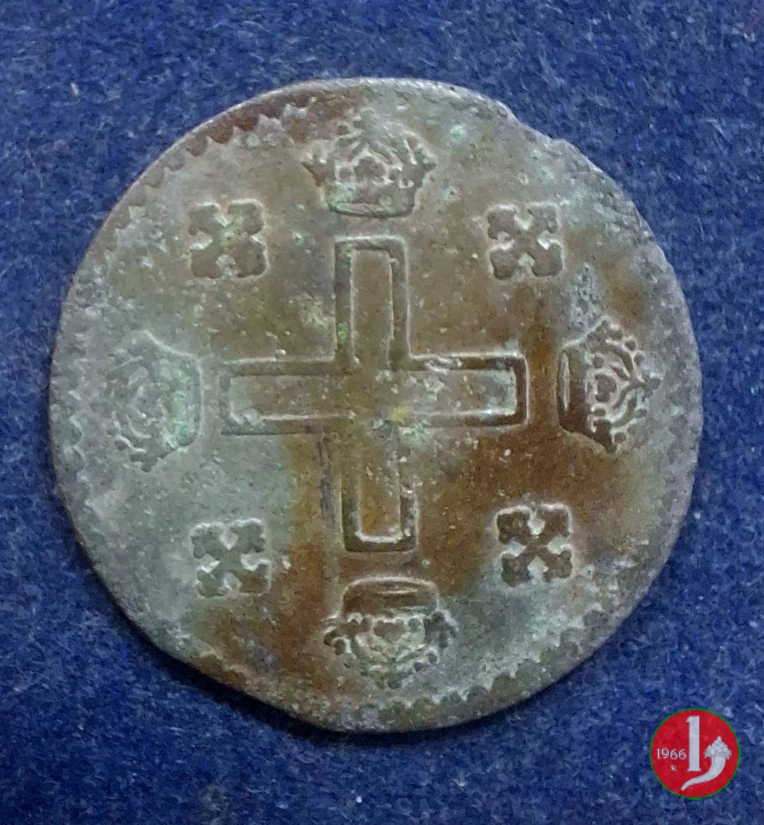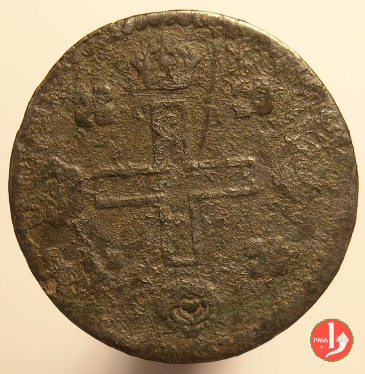 In tre righe: data - SOLDI - UNO, contornati da dei giglietti, intorno rosetta VIC • AM • II • D • G • D • SAB • PR • PE • REX • CY Croce piana con corone alle estremità e 4 crocette mauriziane