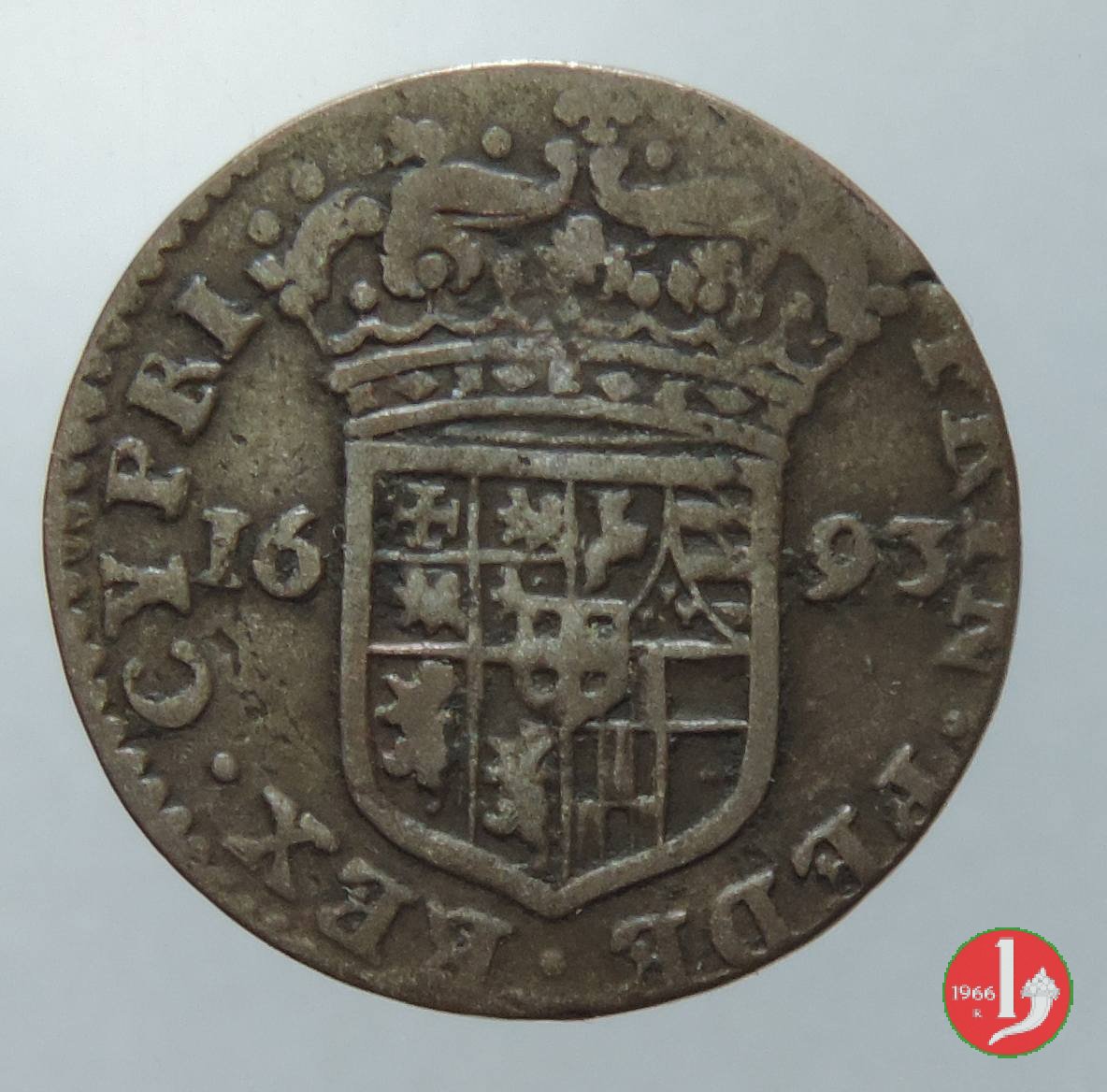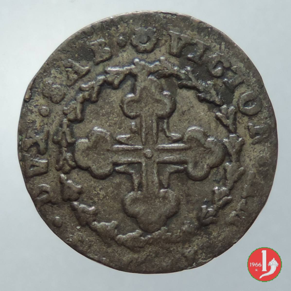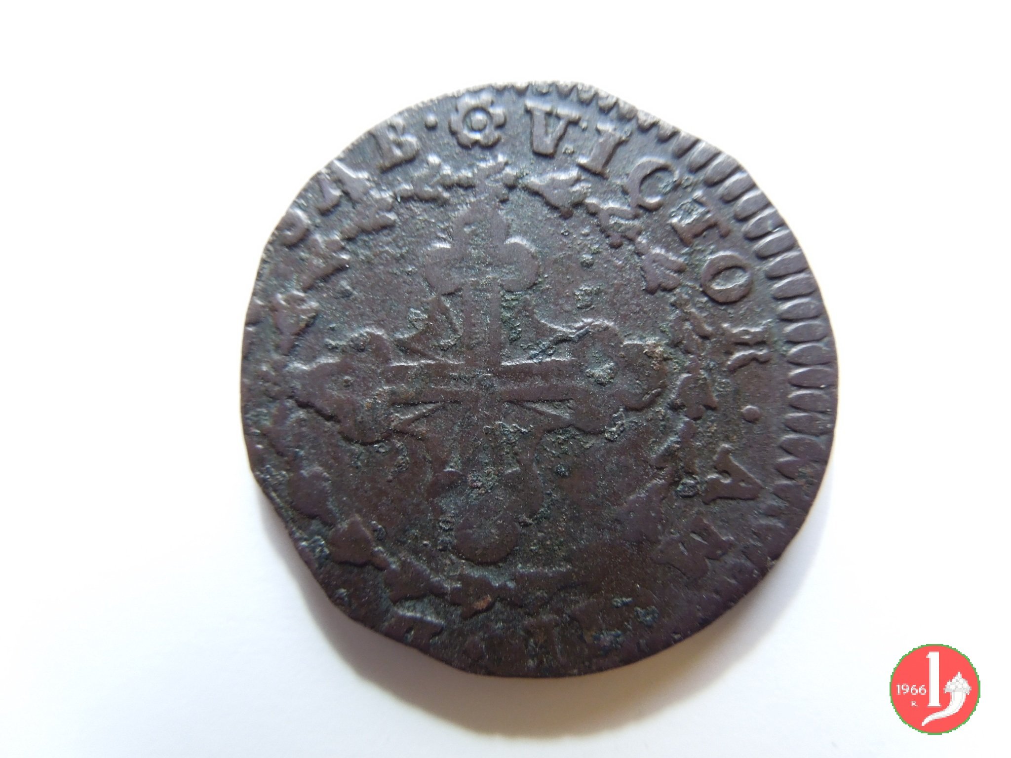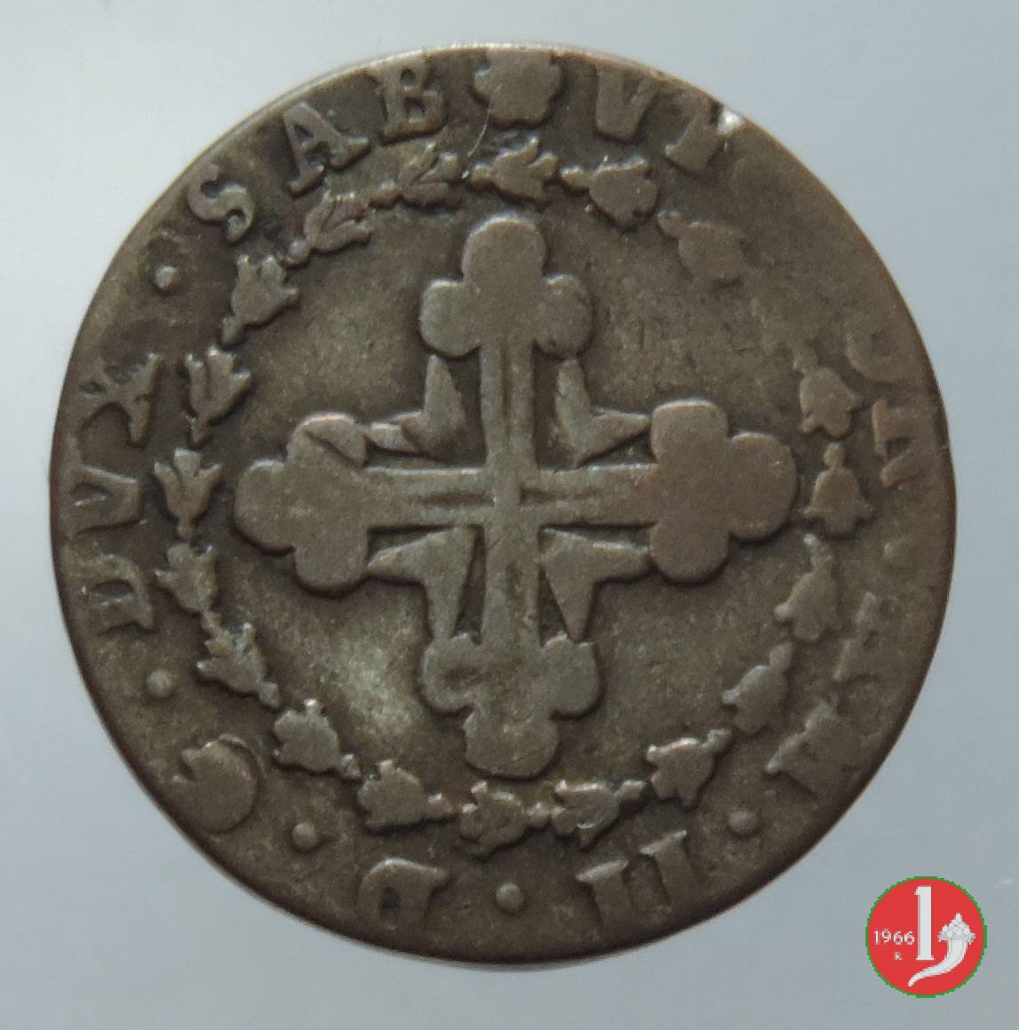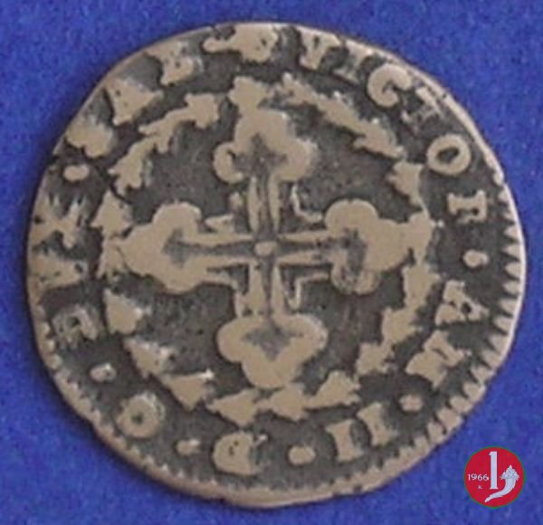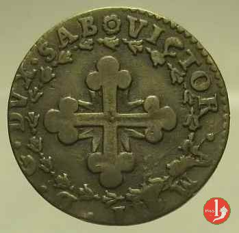 Croci di S. Maurizio e Lazzaro contornate da dei giglietti ruotanti in senso orario, intorno rosetta VICTOR • AM • II • D • G • DUX • SAB • Scudo sabaudo completo, coronato e con ai lati la data, intorno PRIN • PEDE • REX • CYPRI