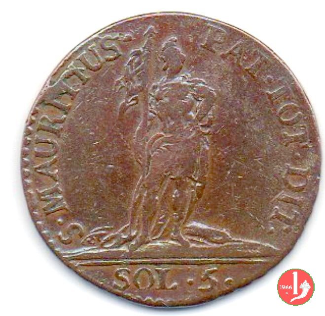 | nel 1799 vennero in parte ritirati per fonderli e coniare i pezzi da 7,6 soldi, hanno comunque continuato a circolare come "soldo di San Maurizio" sino al regno d'Italia svalutati pero' a 5 centesimi | |||||||||
