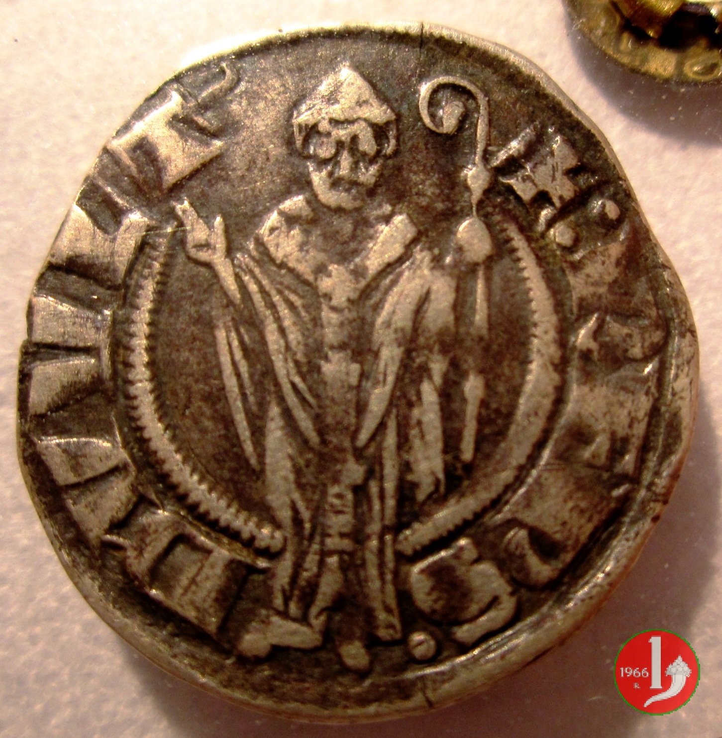| RUGGERO DE' RICCI VESCOVO 1291-1301. Moneta attribuita in letteratura (Lisini 1909 e CNI) a Ranieri I degli Ubertini nell'anno 1254 (assedio fiorentino e saccheggio scongiurato) Ranieri I Belforti (Rossi 1882) e Ranuccio III Allegretti (Luppi 1891). In realtà Ranieri non fu mai eletto Vescovo e recenti studi (Villoresi 2003 e Betti et alii 2004) hanno appurato, revisionando anche gli altri Autori, che si tratta di un nuovo tipo di Agontano emesso nel 1295: il"volterrano delle stelle". | |||||||||||||||