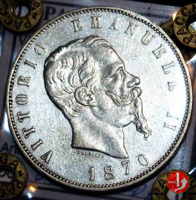 Segno di zecca per Milano: M e monogramma BN ai lati del valore Segno di zecca per Napoli: N ma anche N e monogramma BN attorno al valore Segno di zecca per Roma: R a ore 7 (la dimensione della R differisce per le monete coniate prima e dopo il 1875) Segno di zecca per Torino: T in stampatello e scudetto con B in incuso oppure T in corsivo e monogramma BN.