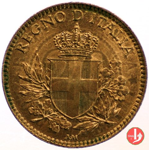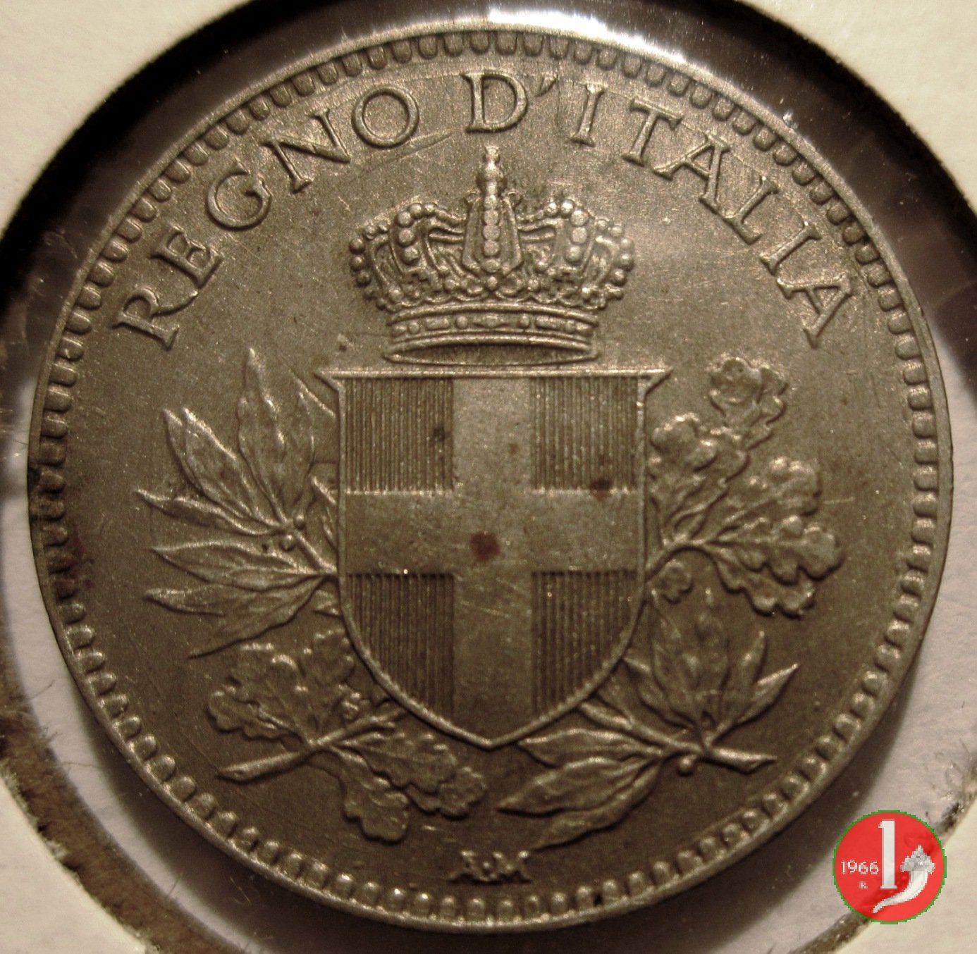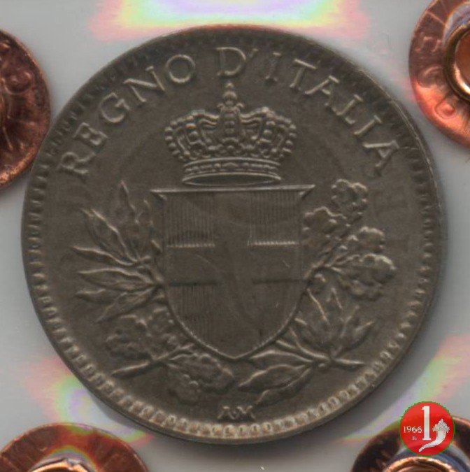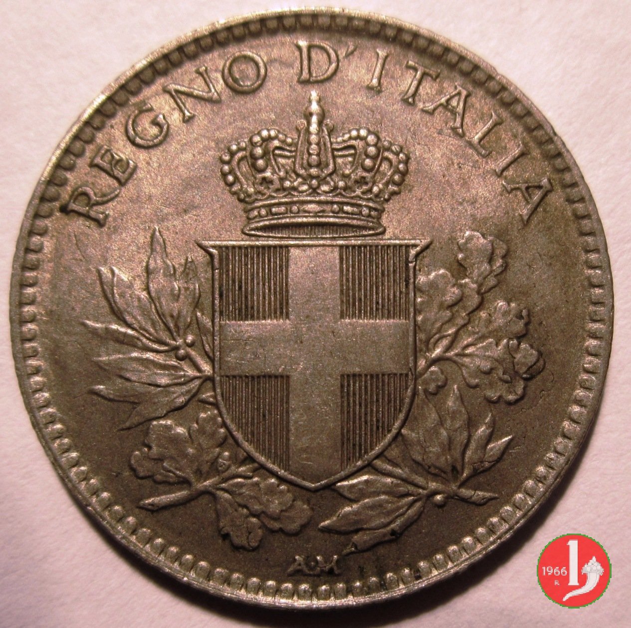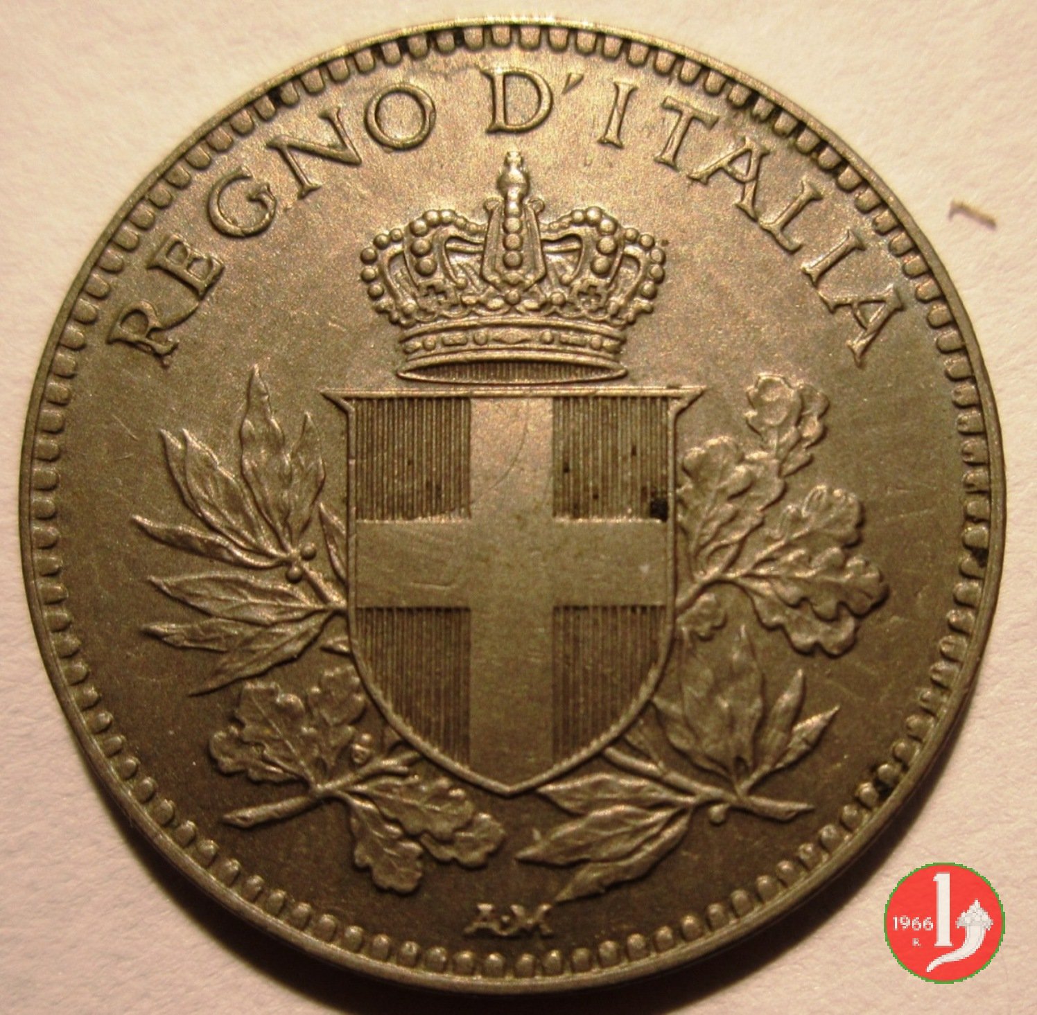 | FDC: La moneta non presenta tracce di usura, può però presentare tracce del conio precedente. La rigatura del contorno, se presente, può presentare tracce di compressione dovuta alla ribattitura ma non tracce di usura. SPL: Tracce di usura sulle gemme sferiche e sulla croce che adornano la corona regale al dritto e sui rilievi maggiori della corona di alloro al rovescio. Il bordo rimane comunque completamente in rilievo rispetto alla dentellatura adiacente in entrambe le facce. BB: Il bordo si è consumato in molti punti a livello della dentellatura adiacente. Non esiste piú separazione tra le gemme centrali della corona al dritto e/o non è piú visibile la nervatura delle foglie di quercia a destra. Al rovescio, alcuni dettagli delle foglie di quercia nella corona non sono visibili completamente. MB: Al dritto non esiste piú separazione tra le gemme sferiche della corona nei tre elementi centrali, ma si notano ancora per i due laterali; la legenda “REGNO D’ITALIA” è ancora leggibile ma appare in buona parte consumata. Al rovescio non si nota piú la separazione tra le foglie della corona d’alloro nella parte centrale, tuttavia sono ancora apprezzabili i nastri che legano la corona. | ||||||||||