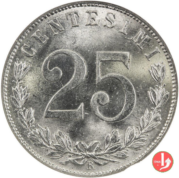 da 25 centesimi. Date le simili dimensioni, disegno e colore si confondeva con la moneta da 1 lira