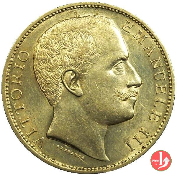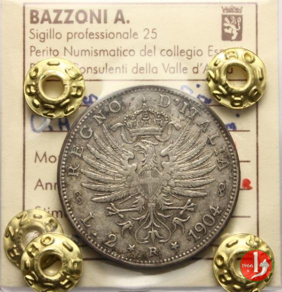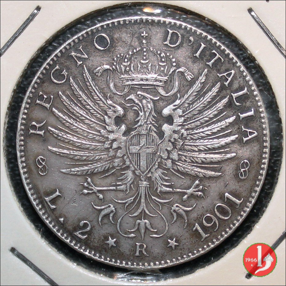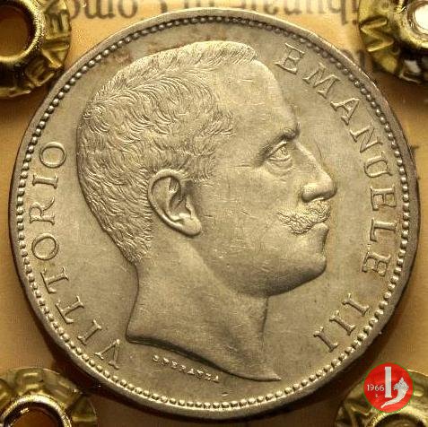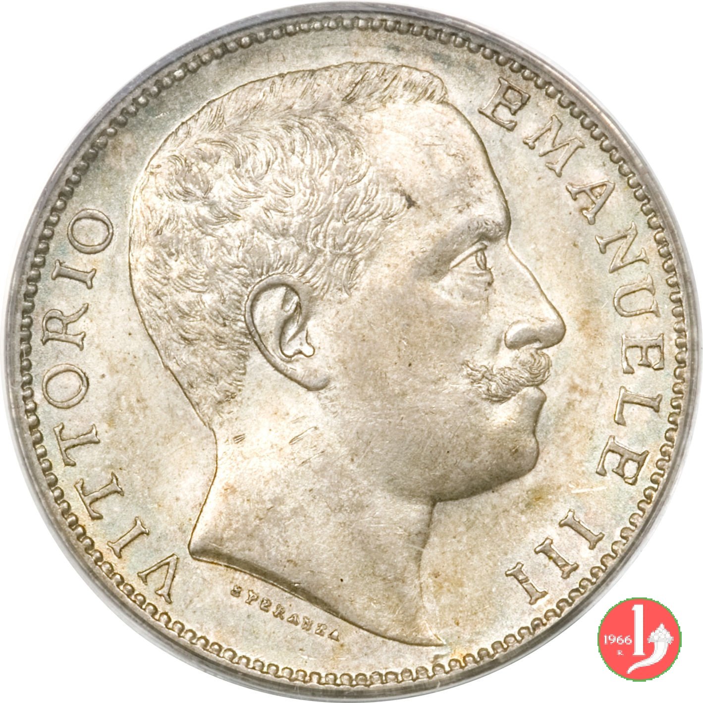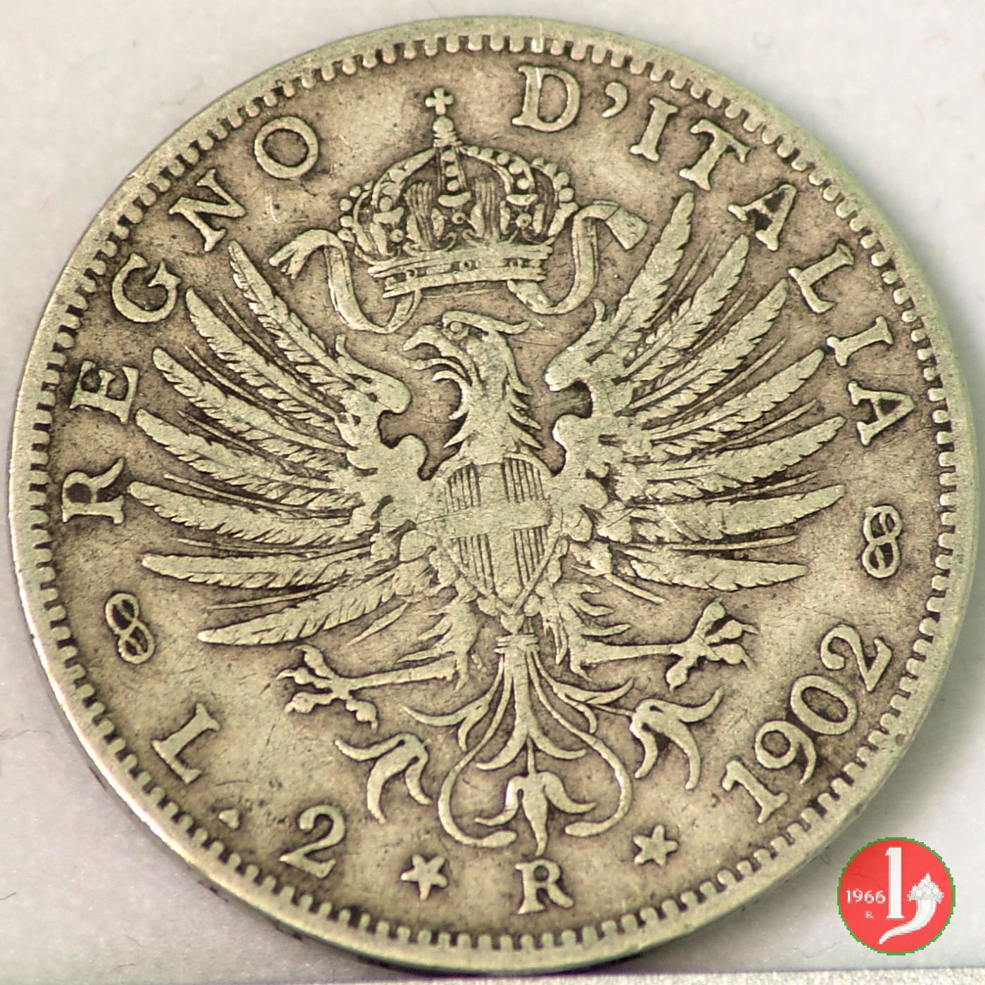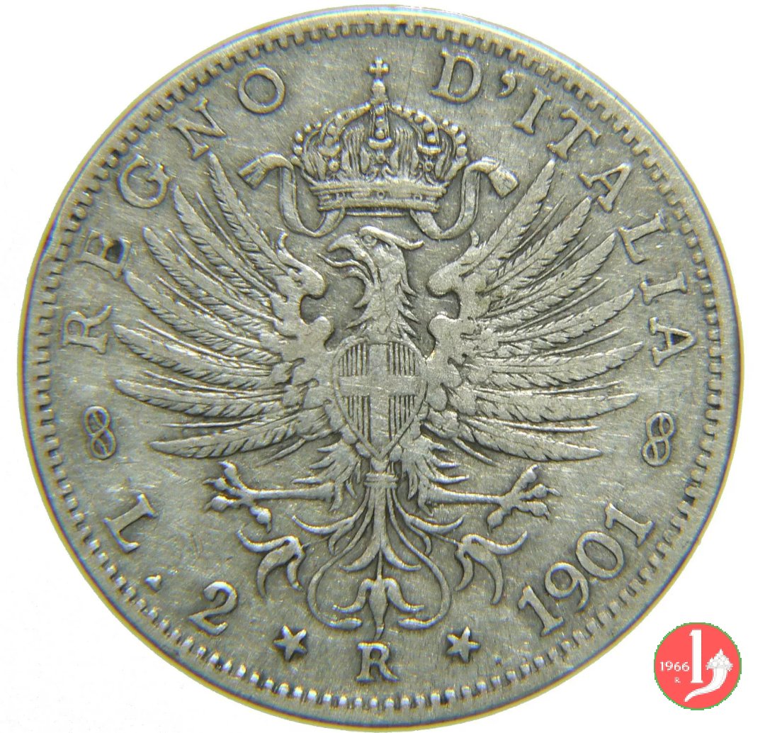 Testa del Re volto a destra contornato dalla scritta: VITTORIO EMANUELE III. Sotto il collo del Re, il nome dell'incisore SPERANZA. Aquila araldica con stemma di casa Savoia. Intorno la scritta: REGNO D'ITALIA, sotto l'indicazione del valore (L • 2), il segno di zecca (R) tra due stelle a 5 punte e il millesimo.