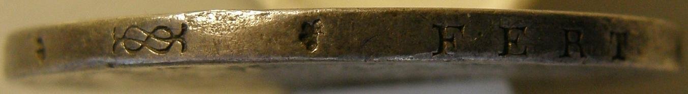 Contorno: in incuso, il motto FERT alternato a nodi savoia e rosette.