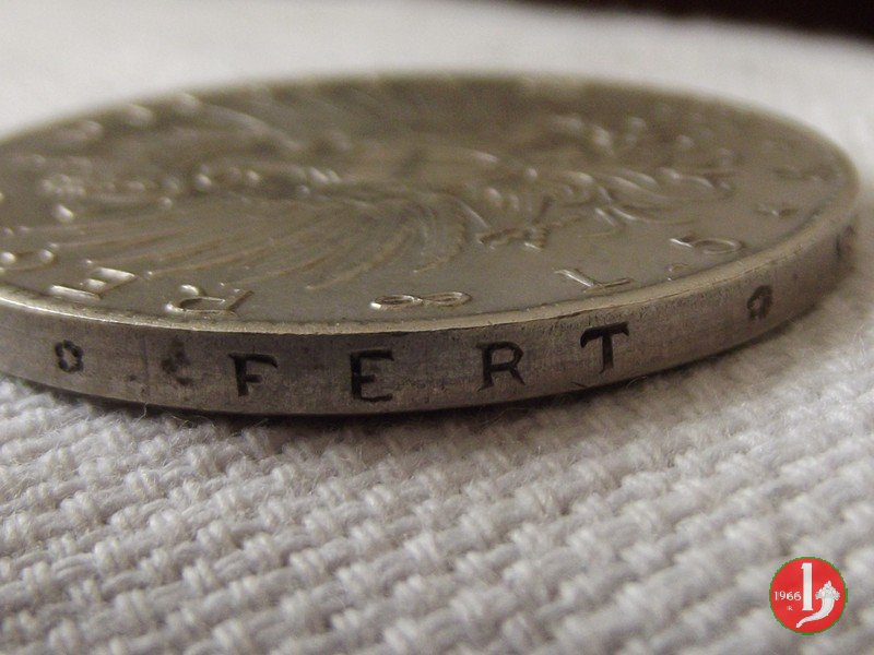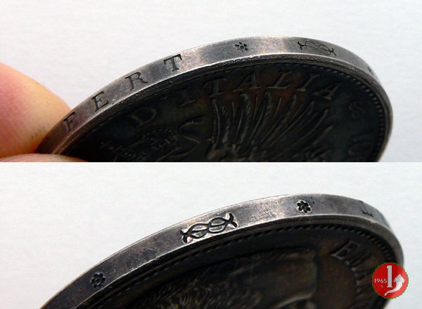 | Contorno: in incuso, il motto FERT alternato a nodi savoia e rosette. | ||||||