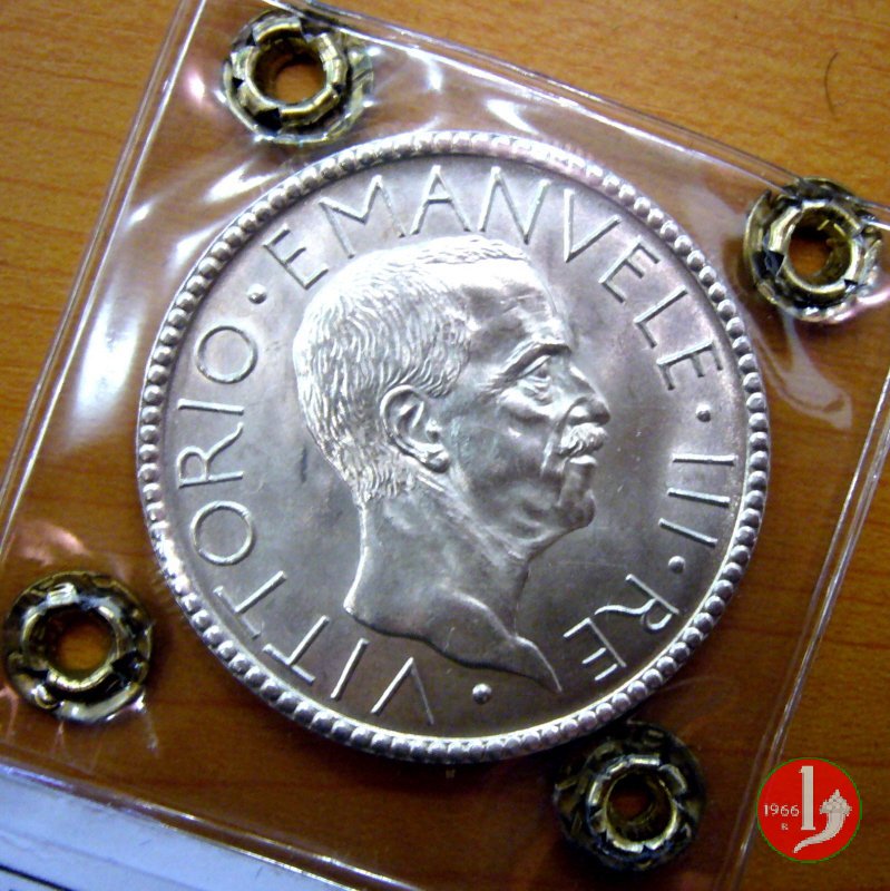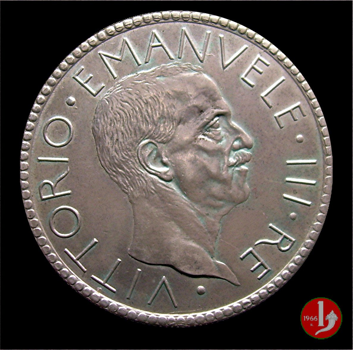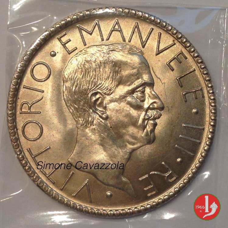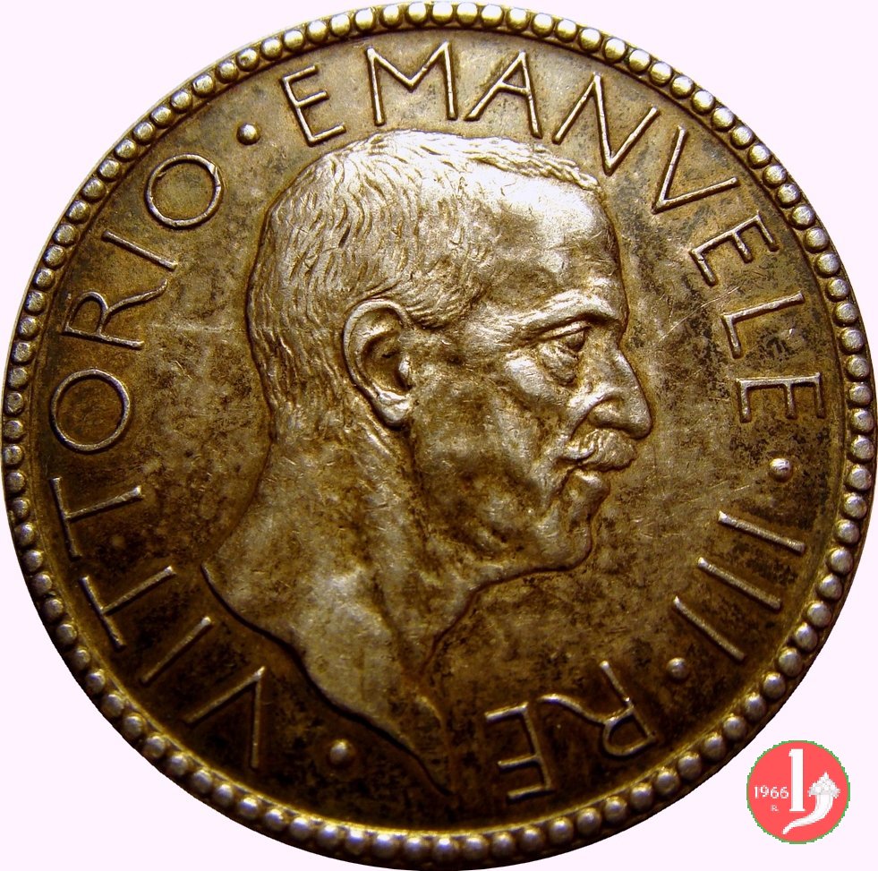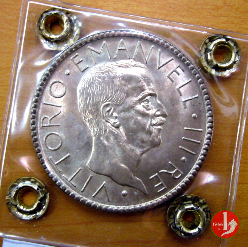 Originamente pensata per celebrare il 7o anniversario della marcia su Roma. Coniata anche dal 1929 fino al 1934 solo per numismatici. | ||||||||||||