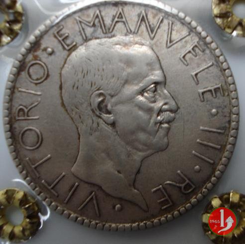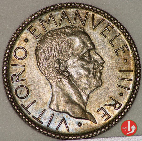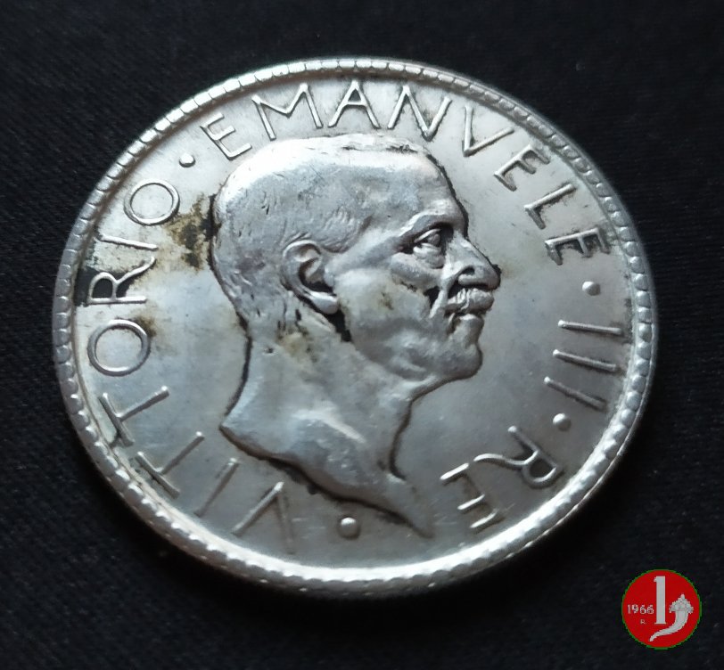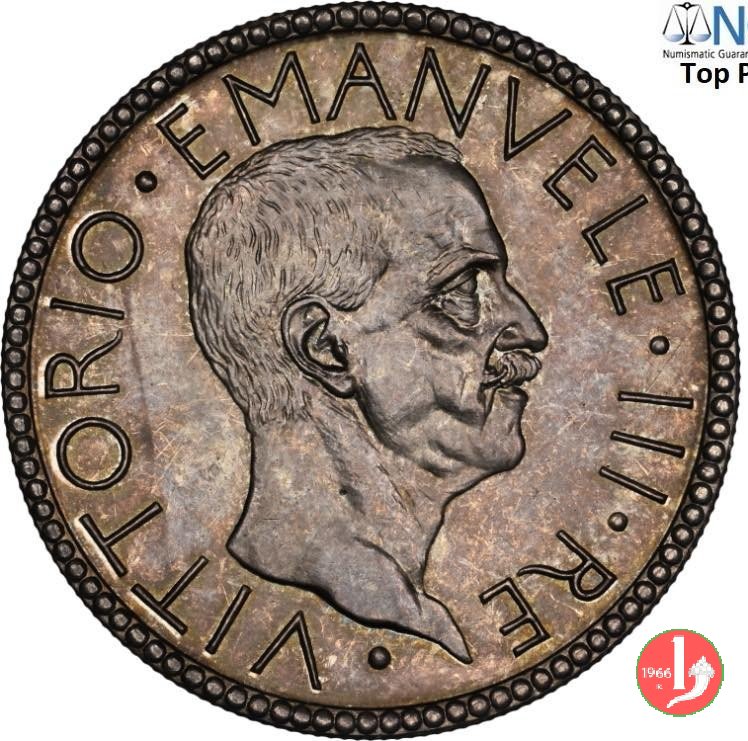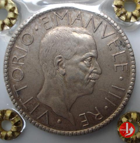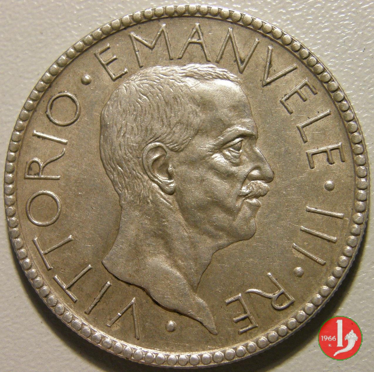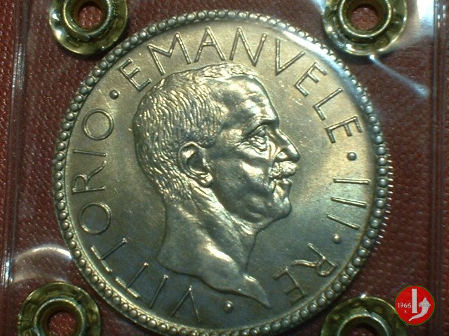 Originamente pensata per celebrare il 7o anniversario della marcia su Roma. Coniata anche dal 1929 fino al 1934 solo per numismatici. | ||||||||||||