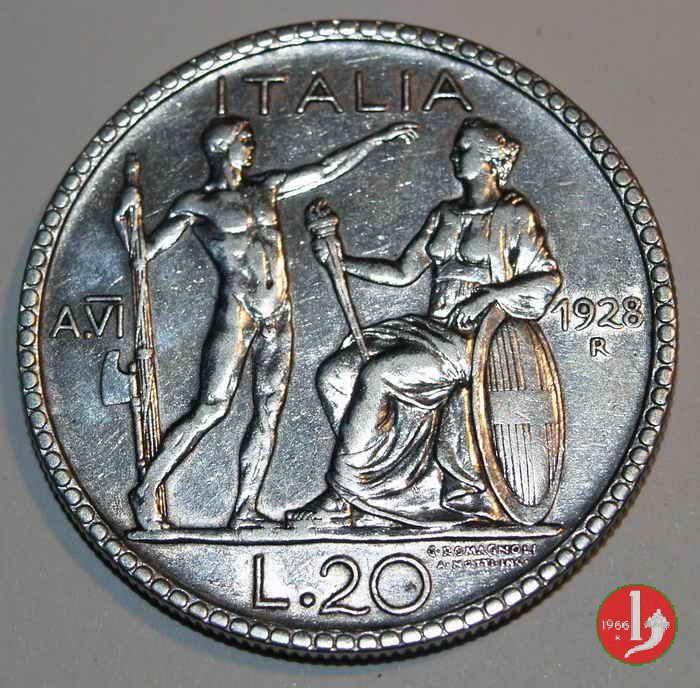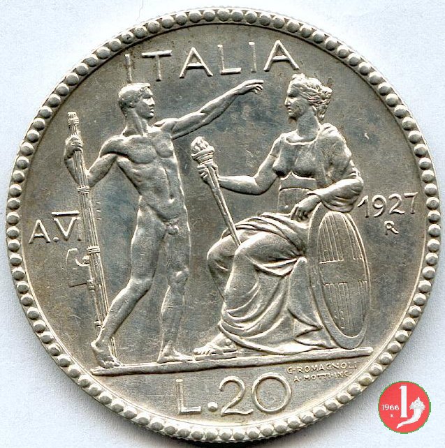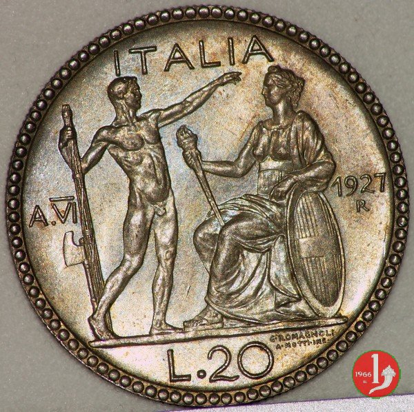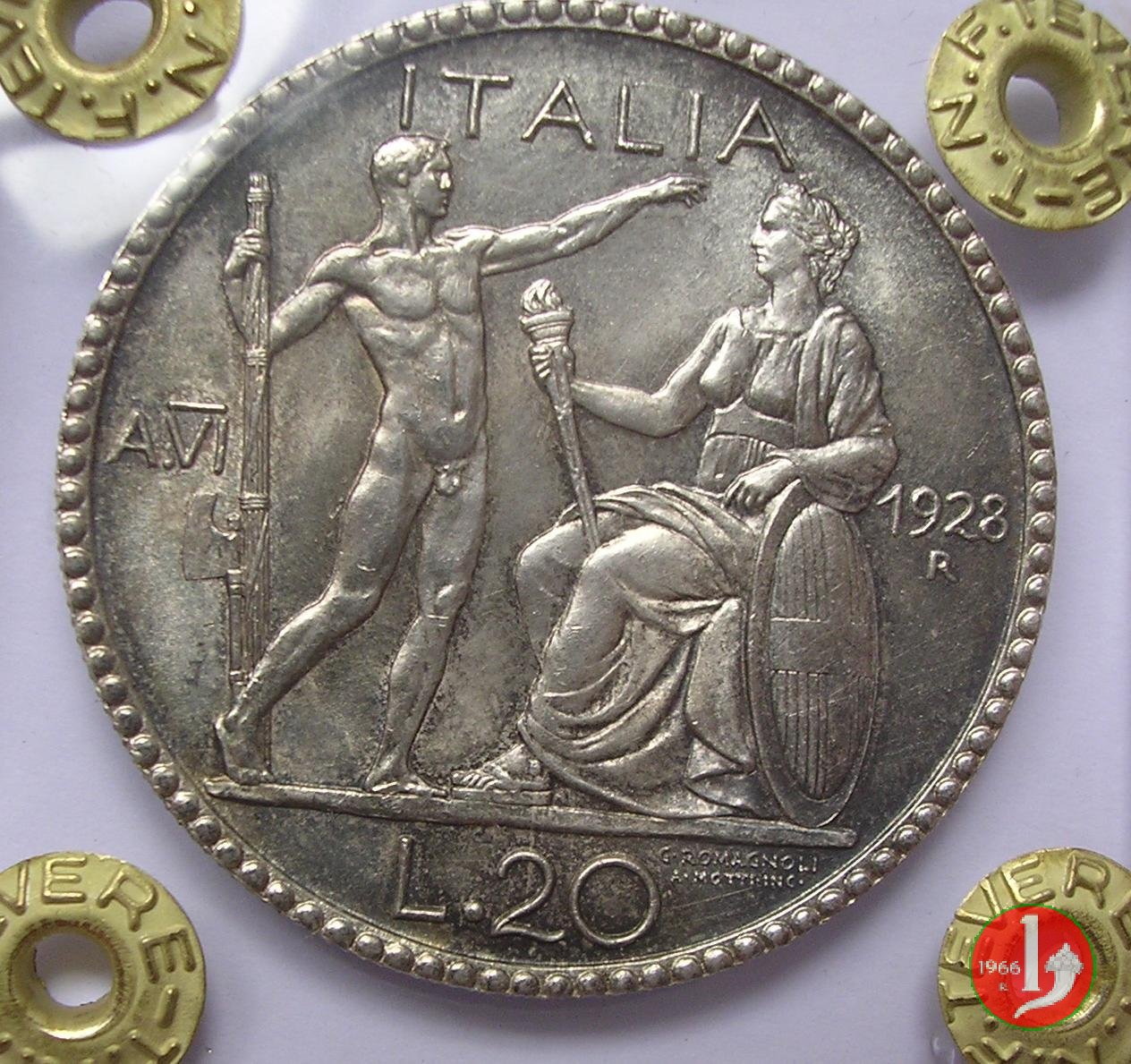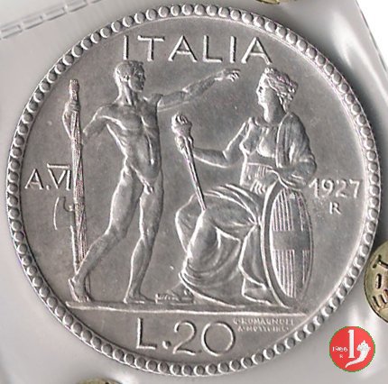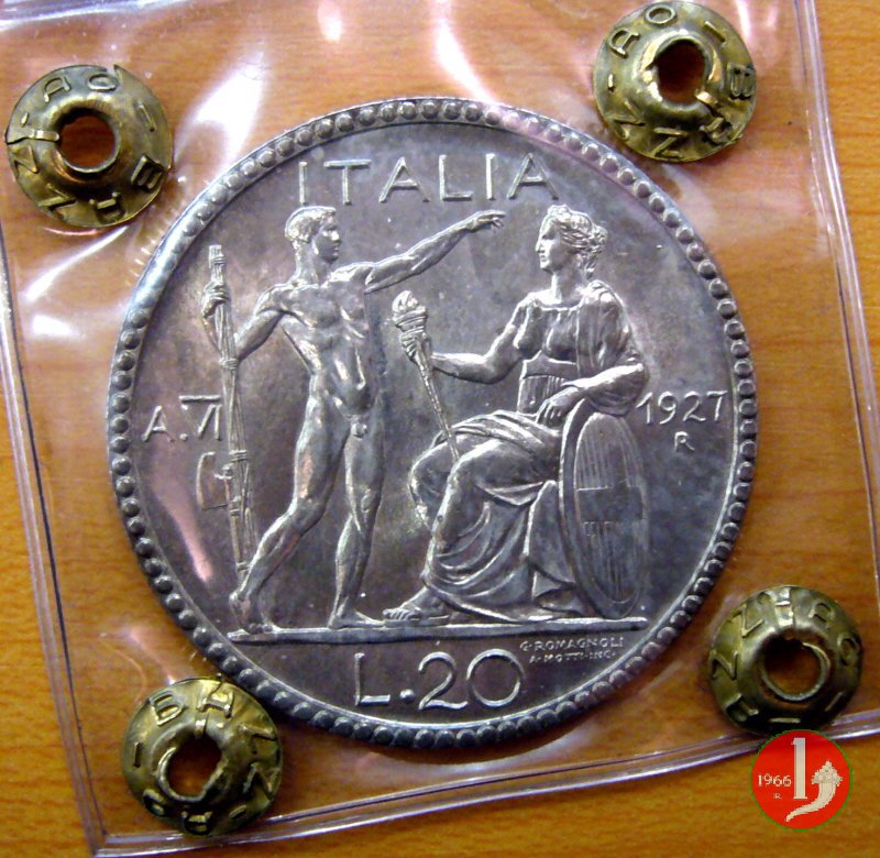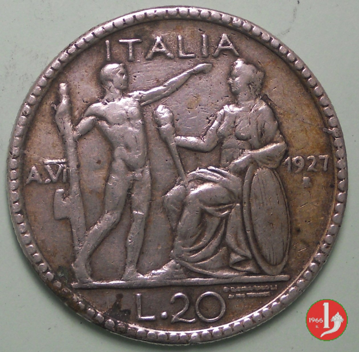 Parlano di questa moneta sul forum in: > VERONAFIL - 20 LIRE Littore 1928, Il secondo acquisto., 20 lire littore 1927 anno V, parere.