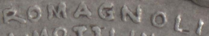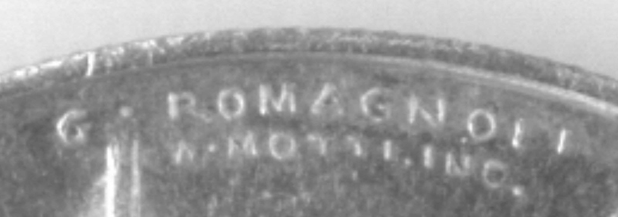 A causa di un difetto di conio molte monete originali presentano la stanghetta orizzontale della lettera L di ROMAGNOLI e il tratto orizzontale della seconda T di MOTTI per metà in rilievo e per metà in incuso; caratteristica questa che molti falsi (ma non tutti) non presentano. Tuttavia, il difetto di conio non si presenta nelle prime monete coniate e la lunghezza della parte in incuso può essere differente. | ||||||||