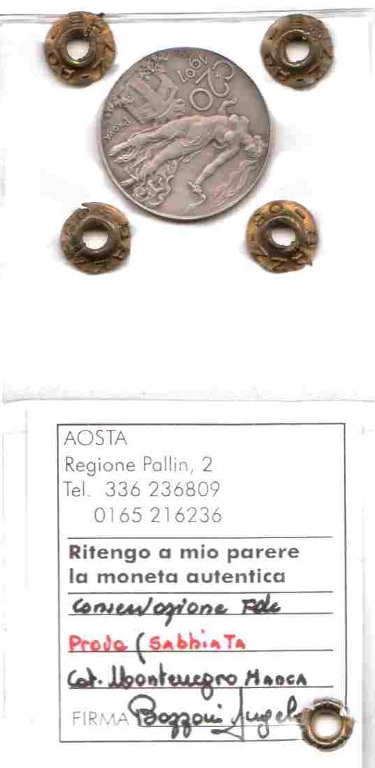Tale progetto è stato anche prodotto presso la zecca romana come prova in nichelio, 4,01 g, con contorno rigato. al D/ fondo piú scavato, al R/ fondo piú scavato e sotto la data "PROVA R.Z.". Simonetti 191/1 W-V3PR/62