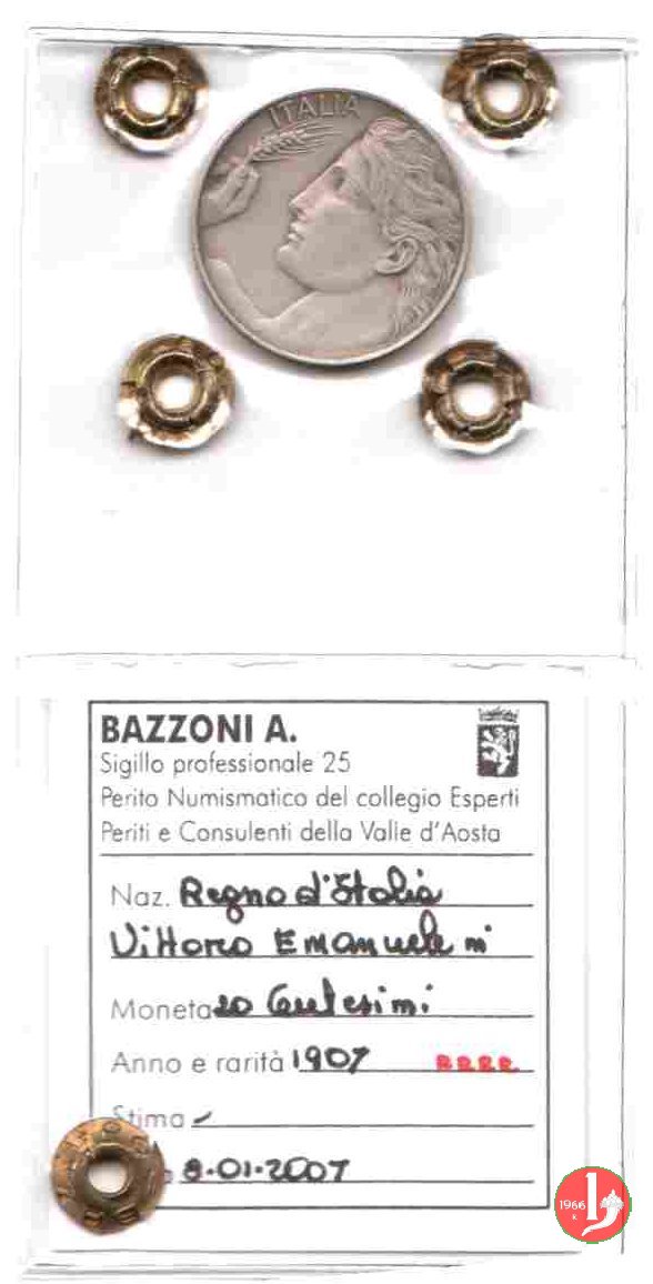 << progetto 10 centesimi 1903   progetto 20 centesimi 1907 per dimensione in rame >>