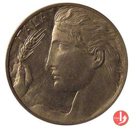 testa muliebre a sinistra; parte della spalla rialzata e recante una spiga di grano nella mano destra sollevata; a sinistra, circolarmente, ITALIA. allegoria della libertà, raffigurata in donna librantese verso sinistra, con fiaccola nella sinistra; alla sinistra in tre righe, l'indicazione del valore, data e segno di zecca; nel basso, lo scudo sabaudo coronato e fregiato.