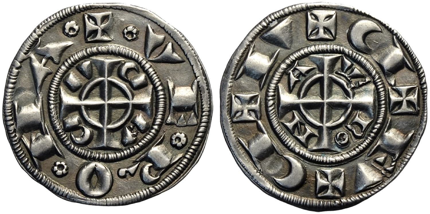 Esistono varianti della legenda. Sul Pigozzo la lettura della legenda è spiegata in FRIR interpretato come FR(IDERICVS) I(MPERATO)R ed è da mettere in relazione con l'imperatore Federico II (1218-1250).