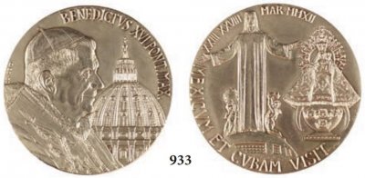 | Medaglia coniata, emessa il 23-03-2012, dallo Stabilimento Stefano Johnson di Milano per la la Segreteria di Stato Vaticana, per ricordare il Viaggio Apostolico in Messico e a Cuba. | |||||