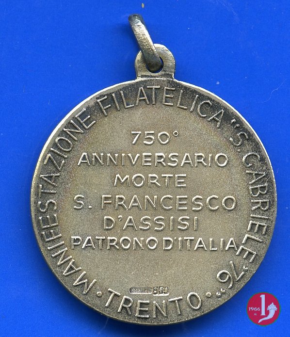 Medaglia coniata realizzata nel 1976 a ricordo della manifestazione filatelica S. Gabriele nel 750° anniversario della morte di San Francesco d'Assisi.