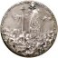 A Memoria delle Vittime dei Campi di Sterminio Obverse: IN MEMORY OF THE _ 6 MILION VICTIMS uomo genuflesso di fronte, su corpi distesi, solleva al cielo lapide raggiante con legenda in ebraico nel campo a dx sopra cortina di nubi: E. MONTI ai lati: 1939 _ 1945 in esergo: legenda in ebraico in basso, ai lati e circolarmente: S. JOHNSON ES INC. _ ITALY | |