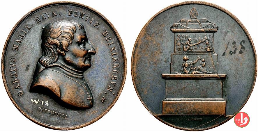 Gabrio Maria Nava (1831) Dritto: GABRIVS. MARIA. NAVA. PONTIF. BRIXIANORVM. busto a dx con berretto, mozzetta e Croce pettorale sotto: ZAPPARELLI in esergo: ZAPPARELLI | |