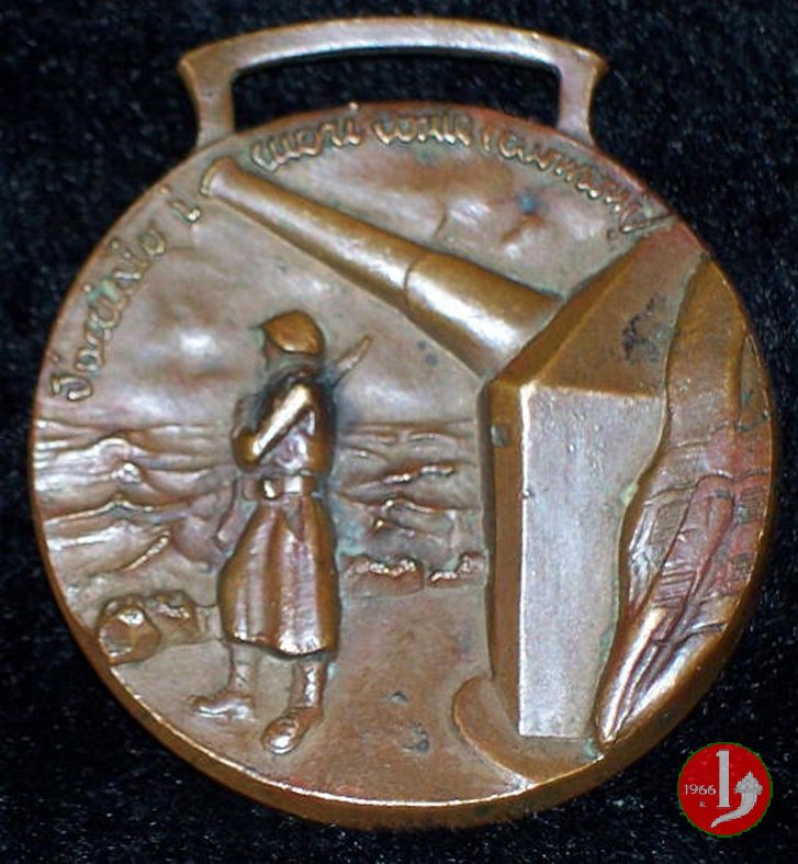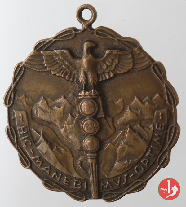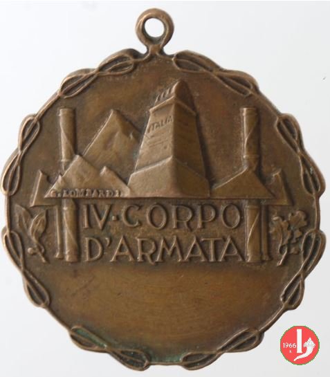 IV° Corpo d'Armata -C- Dritto: Insegna legionaria su paesaggio montuoso in basso entro nastro: - HIC - MANEBI _ MVS - OPTIME - sulla prima piramide di sx: C. LOMBARDI sotto tra rametti d'alloro e quercia: IV • CORPO = D'ARMATA in esergo: spazio per dedica | |