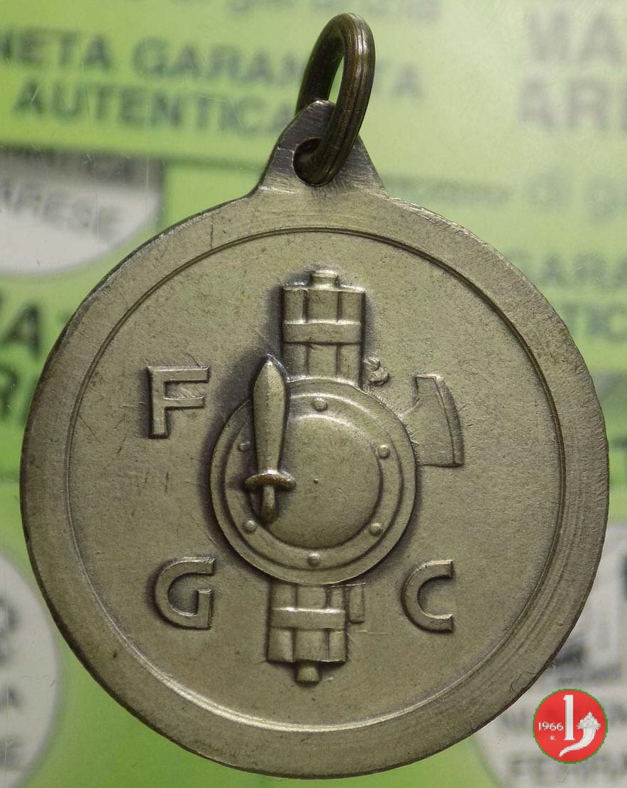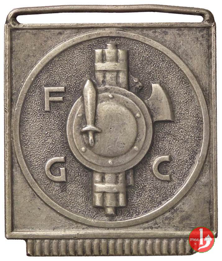 Distintivo FGC -C- Dritto: entro patera: fascio verticale con lama a dx con scudo e gladio sul contorno: F _ G _ C | |