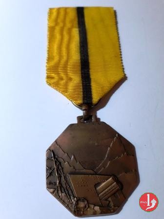 Regia Guardia di Finanza -C115 Dritto: figura maschile nuda e genuflessa a dx, scolpisce stele date (dal 1774 al 1918) e località e sullo sfondo aquile su rilievi montuosi in esergo: - NEC - RECISA - = - RECEDIT - tra fregi delle Fiamme Gialle e sormontato da corona: Ippogrifo a sx su fascio orizzontale (inciso: ECCELLENZA DOTT. G. BOTTAI MINISTRO ED. NAZ.) | |