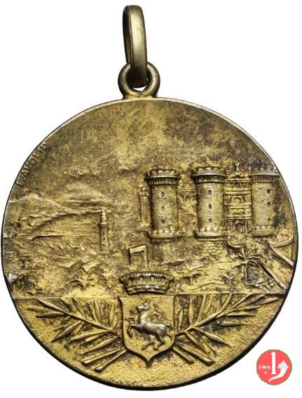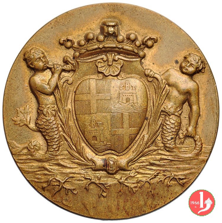 Scuola d' Applicazione Artiglieria e Genio -C126 Dritto: figura femminile regge in palmo di mano Nike della Vittoria e serto d'alloro sullo sfondo: atleti sotto: SUOLA D' APPLICAZIONE DI ARTIGLIERIA E GENIO | |