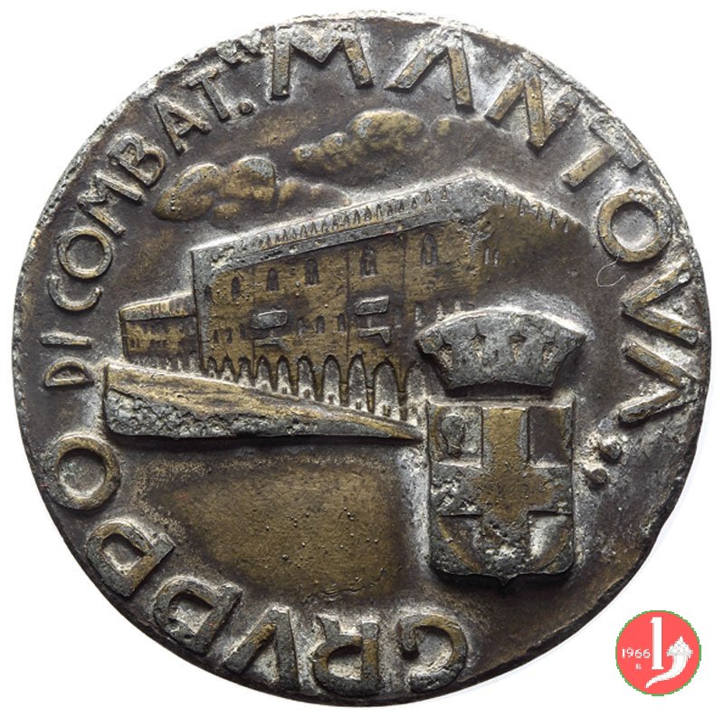 Gruppo di Combattimento Mantova -C108 Dritto: guerriero nudo, in piedi, verso dx, regge gladio tra bandiere e baionette in alto a dx: ABBI = FEDE vista del Palazzo Ducale di Mantova e stemma coronato di Mantova in basso a dx | |