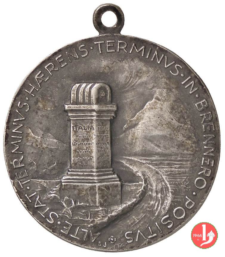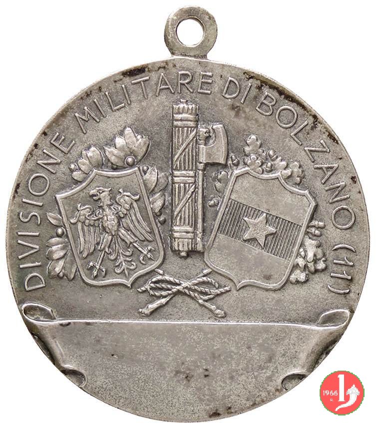 Divisione Militare 11° Bolzano -C88 Dritto: ALTE • STAT • TERMINVS • HAERENS • TERMINVS • IN • BRENNERO • POSITVS * fregio e cippo di confine ITALIA e sullo sfondo vette alpine in basso: S.J. fascio verticale con lama a dx posto tra due stemmi su rami d'alloro e quercia e legati in basso da nodo d'amore in esergo: cartiglio vuoto | |