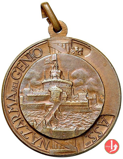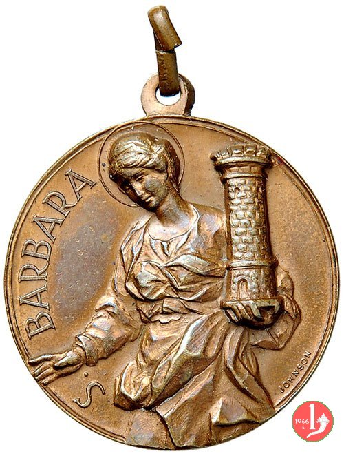 Ass. Naz. Arma del Genio - Santa Barbara Dritto: S. _ BARBARA mezzo busto della Santa, nimbato, di 3/4 a sx in basso, a dx: S. JOHNSON grande medaglia con veduta frontale di Castel Sant' Angelo su fascio | |