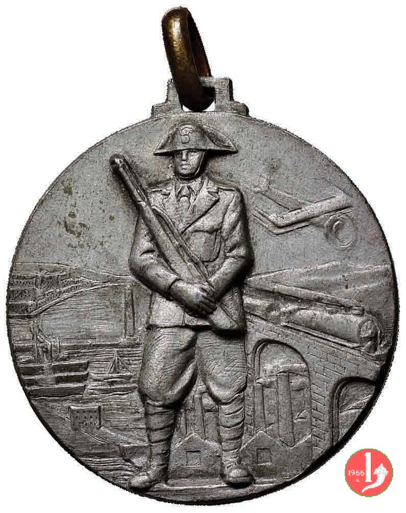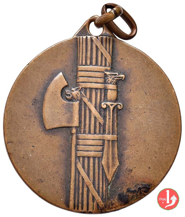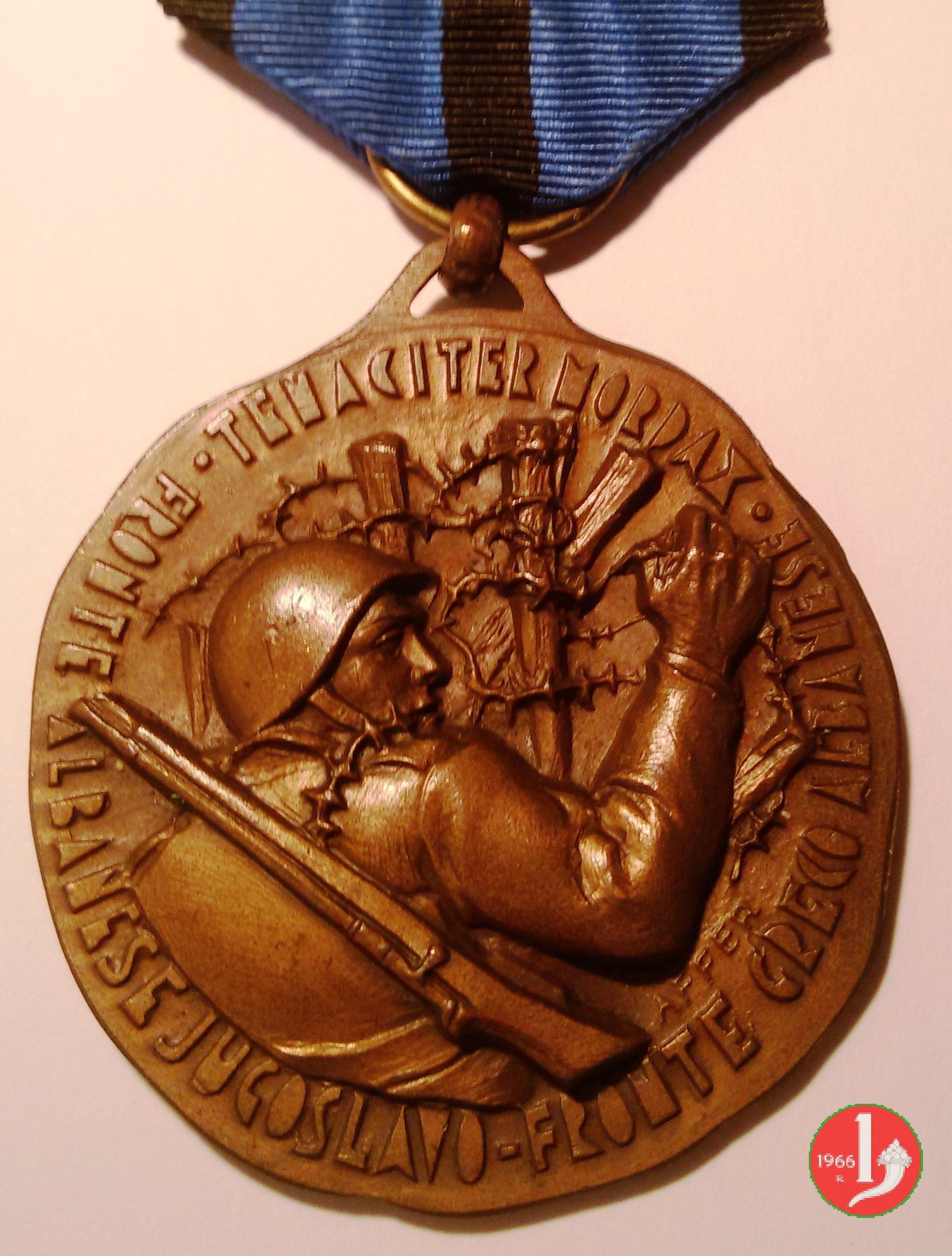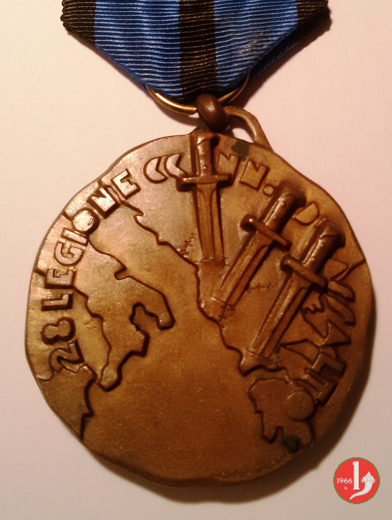 M.V.S.N. - 28° Legione CC. NN. -C67 Dritto: TENACITER MODAX = • FRONTE ALBANESE JUGOSLAVO • FRONTE GRECO ALBANESE • busto di Soldato Italiano con elmo, entro filo spinato, volto a dx in basso, a dx: AFFER pugnali posti sulla planimetria del Balcani in basso a dx: LORIOLI - MILANO | |