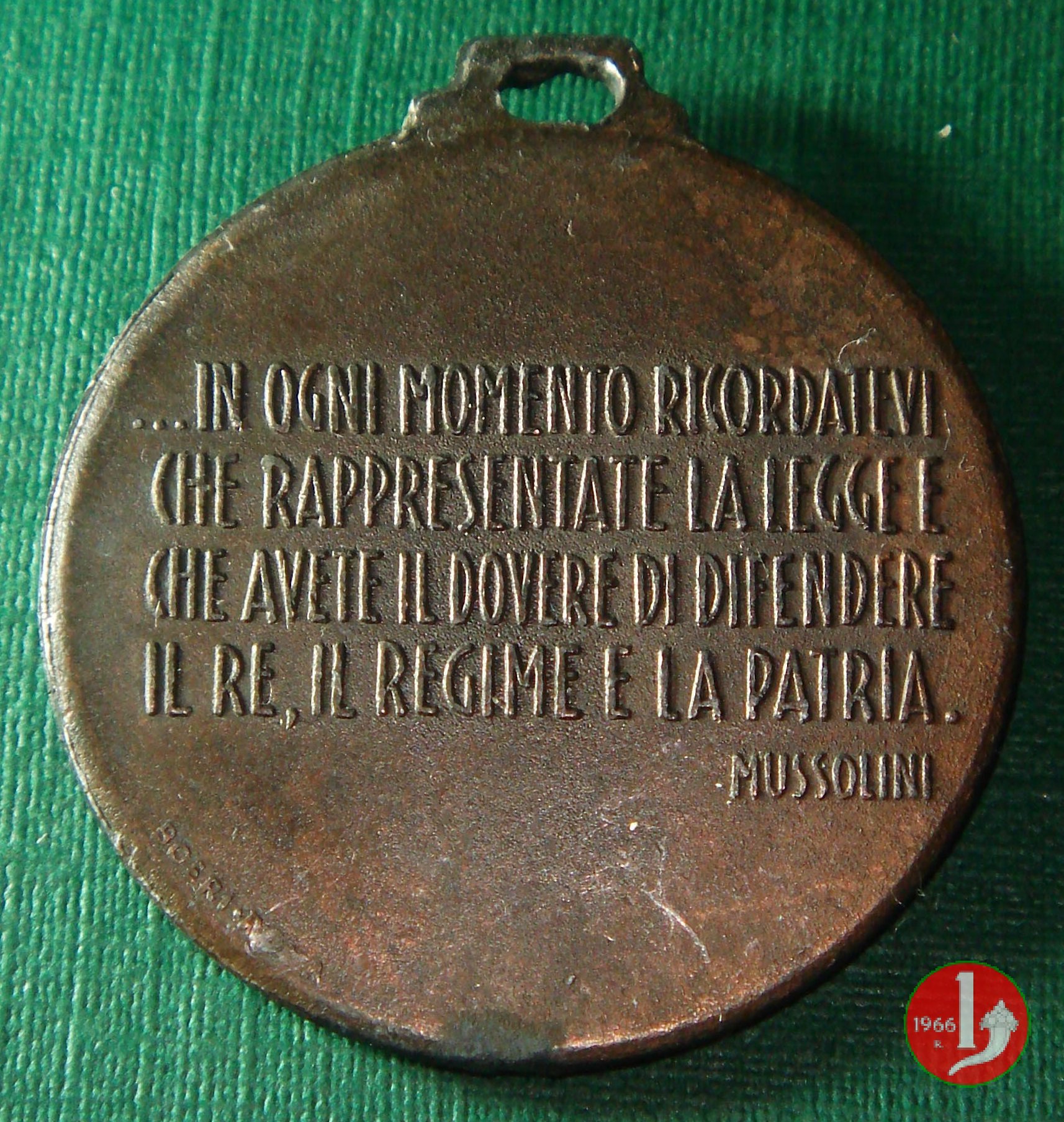 I° Legione Carabinieri Reali di Messina -C113 Dritto: I LEGIONE CARABINIERI REALI DI MESSINA tra rami di quercia: Stemmi coronati di Messina, Ragusa, Siracusa, Catania ed Enna sullo sfondo: Monumento a San Placido Patrono di Messina Aquila di fronte ad ali spiegate, coronata e con Stemma Savoia in petto, presso fascio verticale e miccia ardente dei RR. CC. contenente il monogramma VE (di Vittorio Emanuele III) in esergo: | |