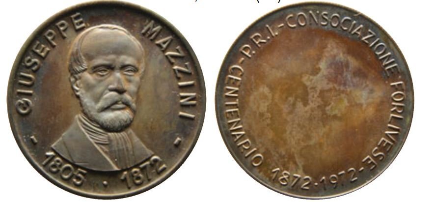 Giuseppe Mazzini 1972 Dritto: GIUSEPPE MAZZINI = - 1805 • 1872 - busto di 3/4 a dx con giacca e sciarpa campo vuoto per dedica | |