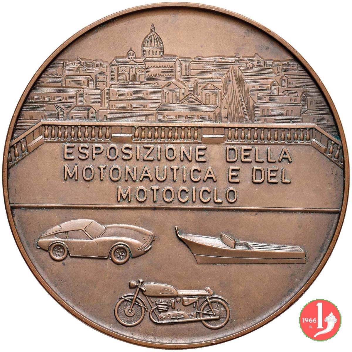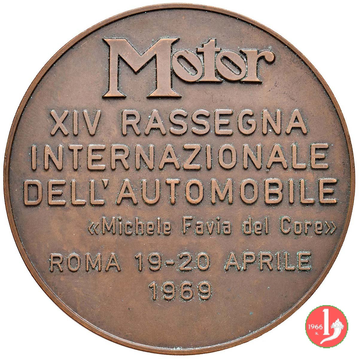 XIV Rassegna Automobilistica 1969 Dritto: La Terrazza del Gianicolo con la vista panoramica su Roma con una Porche, un motoscafo e una motocicletta al centro, sulla pavimentazione: ESPOSIZIONE DELLA = MOTONAUTICA E DEL = MOTOCICLO la figura allegorica del fiume Tevere seduta, versa acqua da orcio e regge i due gemelli sulla Lupa Capitolina in alto circolarmente: ROMA in basso, circolarmente: AVELLINO entro nastro su medaglia con frutti: NATALE _ 1970 entro la medaglia: G. MONASSI Prospetto anteriore del Campidoglio con la scalinata sotto, a sx: GIANNONE sotto: foglie ci quercia e d'alloro decussate Stemma coronato della Città di Roma bordato da nastro sotto: S. JOHNSON teste di fronte dei tre fondatori nel campo, entro targa e sopra alla Guida Monaci aperta: GUIDA MONACI = ANNUARIO GENERALE ITALIANO sotto: S. JOHNSON _ VEROI in basso circolarmente: VN _ SECOLO DI TRADIZIONE la figura allegorica dell'Abbondanza seduta e velata, allatta due bambini a sx: GISMONDI ROTARY * INTERNAZIONAL • CONGRESSO REGIONE ENAM * vista dell'Ara Pacis Bersaglieri all'attacco di fronte Lupa Capitolina con i gemelli a sx in basso: pianta di cavea la figura allegorica del Tevere disteso su fontana e in basso due figure femminili, nude , distese e contrapposte in basso, a dx: LORENZO FERRI spazio per dedica in basso, circolarmente: ACCADEMIA TIBERINA in basso, a dx: GRECO Stemma coronato della Città sotto, a sx: JOHNSON in esergo: PORTA PIA = 20 SETT. 1870 in basso: R RONDINELLI Lupa Capitolina sulla planimetria dell'Italia Bersagliere, di spalle, suona la tromba in basso: C. CANTALAMESSA in basso a dx: S. JOHNSON M.V. INC. Stella raggiante sormonto lo Stemma di Roma tra due Bandiere d'Italia in basso: 19 _ 70 sotto: Numero esemplare Operaio impegnato a scavare col martello pneumatico a sx e lanterna a dx in esergo: E. VARISCO La Fontana delle Naiadi sulla base a sx: LORIOLI busto di 3/4 a dx della figura allegorica di Roma elmata che regge fusto di colonna con Lupa Capitolina sopra alla spalla dx: TERRUGI in basso a sx: JOHNSON Bersaglieri con cappelli piumati presso Porta Pia in basso: F.C. INC. busto della figura allegorica dell'Agricoltura (Sofia Loren) di 3/4 a sx, regge spiga tra i capelli nel campo a sx: FAO a sx presso il bordo: G. SIMON fascio di spighe di grano legate da nastro con la legenda: 1951-1971 in basso a dx: Z figura femminile (allegorica della vanità) velata e china verso sx regge specchio sotto: OPO sotto: SARTORI = 1575 a sx, presso il bordo: VEROI sotto, circolarmente sopra ad onde: BANCO DI ROMA in basso: logo del Banco di Roma a sx, presso il bordo: VEROI sotto, circolarmente: BANCO DI ROMA in basso: onde emiciclo del teatro con platea e palchi Stemma coronato della Città di Roma tra due Soldati uno con scudo, l'altro con balestra sotto la base: P. GIAMPAOLI _ S. JOHNSON Statua equestre di Marco Aurelio verso dx in esergo: VEROI Prospetto anteriore del Palazzo dei Conservatori nel suo aspetto premichelangiolesco sotto, a dx: S. JOHNSON busto a sx di Trilussa sotto: ✠ S.P.Q.R. a dx: Pericle Fazzini La Santa con grande cappello genuflessa di 3/4 a dx in alto, a dx: riproduzione della medaglia miracolosa in basso: CALVELLI '72 negativo del D in basso: S. JOHNSON circolarmente sulla seconta riga a contorno: ORDINIS • SANCTI • JOANNIS • HIER • busto a sx con collare da Gran Maestro dell' Sovrano Ordine Militare di Malta sotto ai lati della Croce dell'Ordine: J. _ P. Stemma coronato dell'Ordine entro collare da Gran Maestro busto tratto dall'Autoritratto a sx con cappello floscio ai lati: • PISA _ NELLO • = • A • MAN _ TOVA • sotto: L. TERUGGI in basso a dx: MAGGI in basso: • ANNO • X • = piastrina con numero esemplare due cavalieri corazzati a cavalli (tratto dal ciclo degli affreschi del Pisanello a sx, presso il bordo: VEROI sotto, circolarmente: BANCO DI ROMA in basso: onde sotto a sx: S. JOHNSON ai lati verticalmente: BANCO DI ROMA _ CREDIT LYONNAIS in esergo: COMMERZ BANK mezzo busto di Minerva a dx sotto: TABORRA _ S. JOHNSON Galera in navigazione di fronte, sulla dx nastro con bandiere spiegate la vento in basso: V. GAETANIELLO Cippo Stradale Romano iscritto: MCMLXXIII = AMSTERDA = BONN = BRUXELLE = COPENHA = DUBLIN = LONDON = LUXEMBU = PARIS = ROMA sotto: S. JOHNSON F.P. INC. busto di Leonardo da Vinci di 3/4 a dx in basso, a dx, corsivo: M. VEDANI busto di 3/4 a dx del pittore Giuseppe Cesari detto Cavalier D'Arpino (tratto da un autoritratto del 1640) sotto: ARPINO Prospetto anteriore dell'Arco a sesto acuto dell'Acropoli di Arpino in basso: GISMONDI sotto: FROSINONE busto a sx con giacca, camicia e foulard al collo nel campo, a sx: E. TESTA in basso a dx: P.T. sotto: S.J. sole raggiante campo mosso in basso a dx: GRECO Stemma coronato della Città di Roma in basso: S. JOHNSON figura allegorica femminile con grande cappello sceglie fiori da stelo nel campo, a sx: VEROI in seconda riga: ORGANIZZATA DAL GAZZETTINO NUMISMATICO nel campo: ROMA = 19-21 OTT. = 1974 in basso: P.B. a sx verticalmente: CERES FAO ROME a dx verticalmente: DOROTY NYEMBE in basso verticalmente: RIBIT testa di fronte della Dea Cerere in basso: CALVELLI 74 Famiglia abbracciata con cesta di pane in basso: CALVELLI entro cornice circolare continua: I due Santi sotto a ombrellone e a dx San Petronio regge modello della Città di Bologna in basso a sx pesso il bordo interno: S. GUIDI alla base: 1575 busto di 3/4 a sx di Madre Teresa di Calcutta a dx presso il bordo sul busto: M • R busto di bimbo denutrito con recipiente contenuto tra due grandi mani nel campo a dx: HOLY = YEAR = 1975 Lupa Capitolina volta a dx allatta i gemelli a sx presso il bordo: GISMONDI a sx presso il bordo: GISMONDI entro ovale centrale: Cristo soccorre un ammalato in basso: GISMONDI Prospetto della Basilica verso Piazza di Porta San Giovanni sotto: Stemma Arcivescovile del Card. Ugo Poletti = AN • SANCTI 1975 Gallo volto a sx canta su monete a dx presso il bordo: MERCANTE nel campo: GAZZETTINO = NUMISMATICO